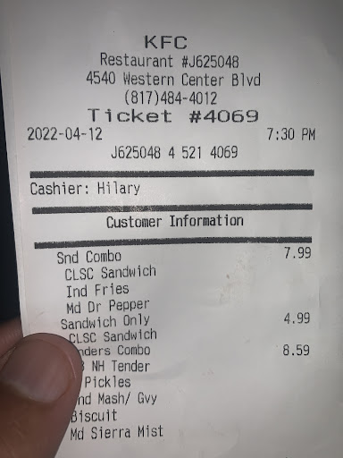 Read moreYou are losing a lot of business this January 20th Evening..... Employees do not care because they get paid regardless but the owner of this business does not get paid unless the store makes money... you guys are too lazy to go outside and put a note on the drive thru when you're headset is not working you didn't put a note on the drive thru telling customers to drive to the window so now you've got people backed up waiting for their Food i I've been here for 50 minutes had to drive around after I ordered my food after she yelled for me to come to the window I'm really mad. I'm still waiting I'm still waiting I'm still waiting this is so bad I'm so angry if you guys would have put a note on the drive through To tell people to pull around to the window this would not be happening right now and you would not be inconveniencing all these people and losing lots of money for this business. Brought the chicken home and the chicken is soggy and very very greasy it's disgusting the grease taste very bad or the batter for the chicken taste bad it's a big waste of my hard earned money I want...