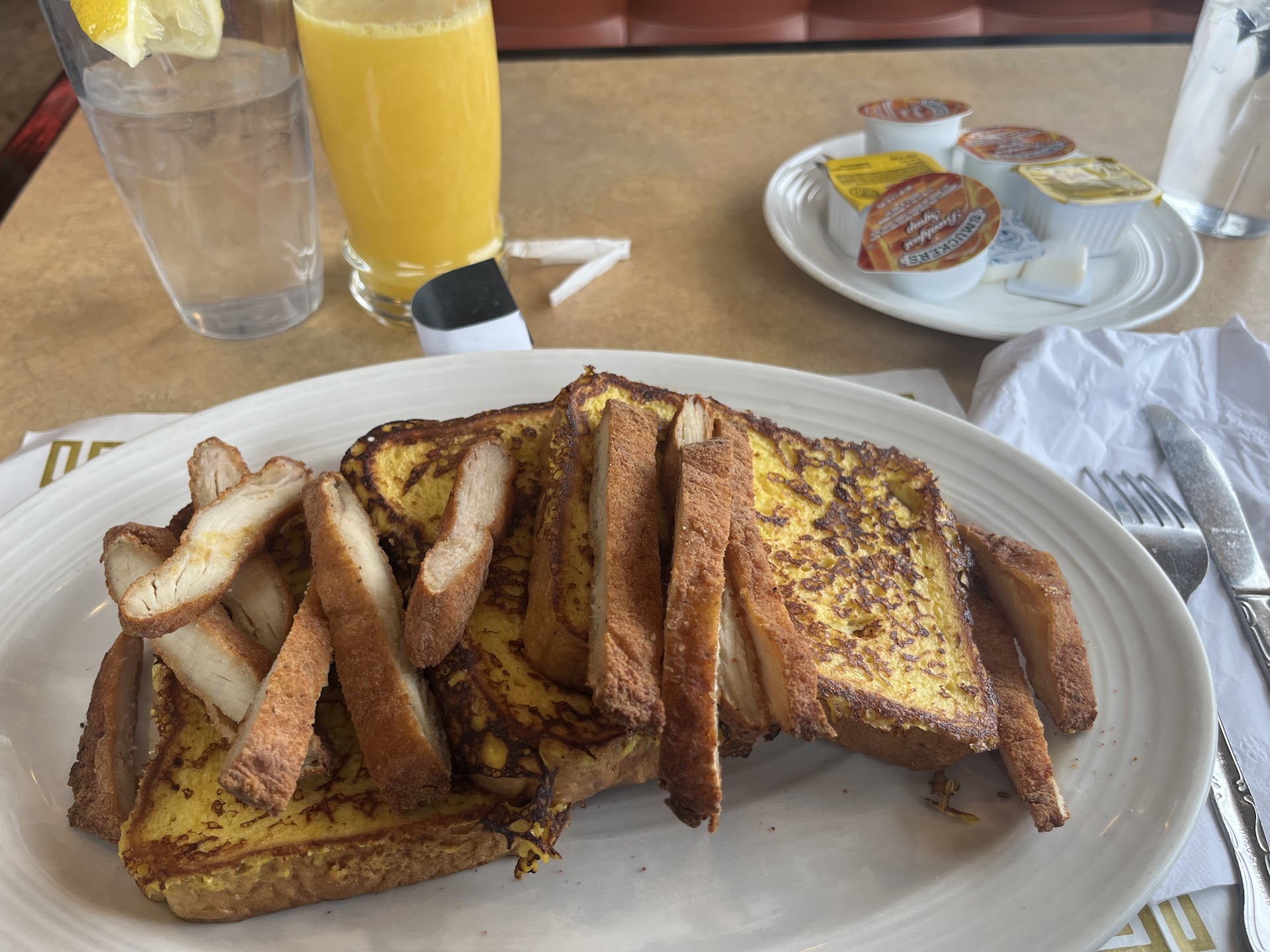 I came here for the first time with a friend from out of town. We were seated at the counter. A few minutes go by and another couple gets seated next to us and the waitstaff takes their order. A few minutes later, our waitress takes our order. About 25 minutes after being seated, the couple next to us receives their food. My friend and I are waiting with empty coffee cups trying to get our waitressās attention as she walks by several times while looked passed us. We finally get her attention, ask for more coffee, and she asks what we had ordered. She had never put it in.