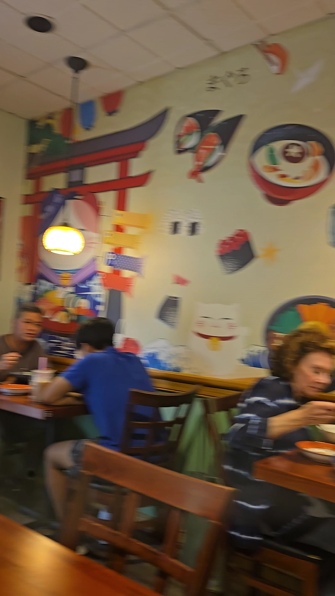 However, the atmosphere quickly became a distraction. The walls were covered in AI-generated art, which felt like an odd and unfortunate choice. There was so much AI imagery that it made us question whether the photos on the menu were even real, eroding our trust in what we were ordering.