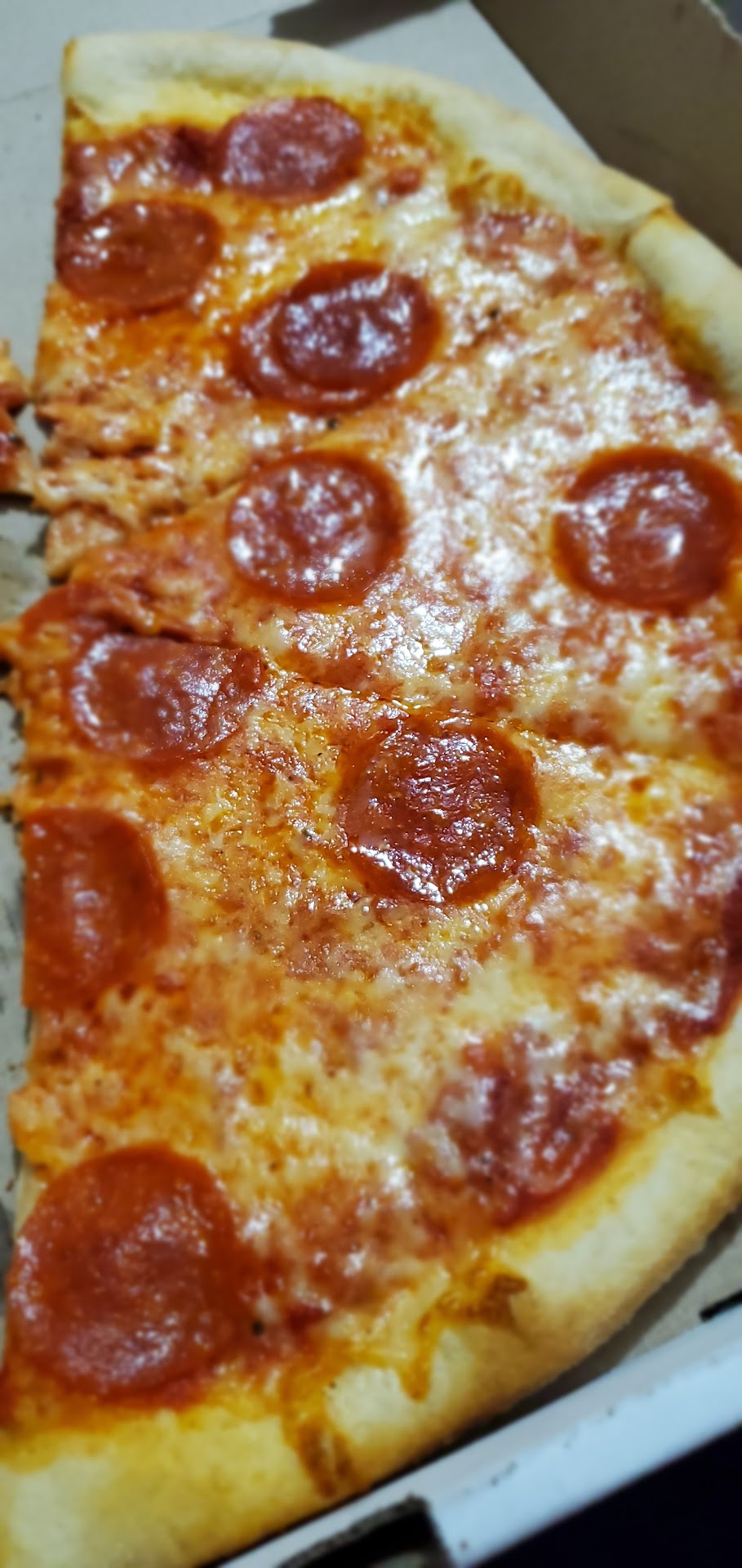 Ordered through slice app. The delivery driver had gotten into an accident and the second driver who dropped off my pizza apologized which was very nice. The issue I have is they delivered the same pizza that was in the car that was in an accident... The pizza box looked like it was stepped on, and the pizza was ice cold.