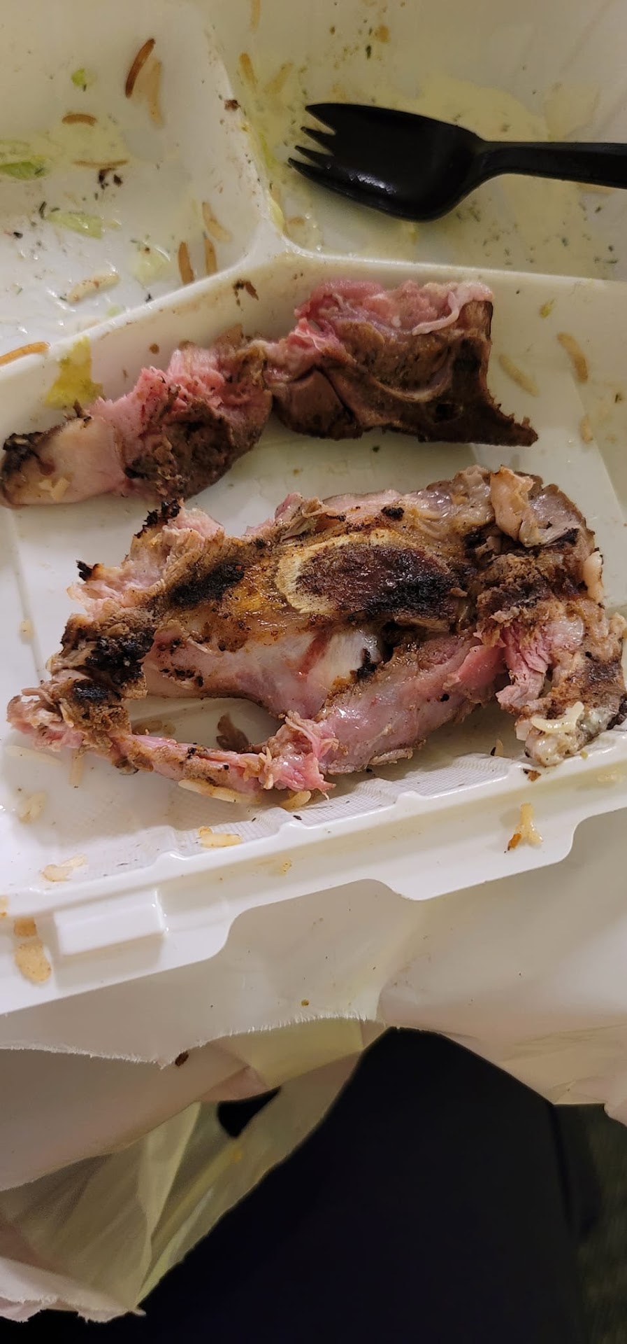 Read moreMeat was undercooked for lamb, I threw some away took picture of two, I called was told I could get something for free when I came back. When I did come in person I was told it was end of bone when I know for a fact it had meat and was the meat and was told.i should have brought it back even though guy on phone said I just needed to come back another day. I took a picture as courtesy to show them but kept saying it was end of bone but I know for a fact it was meat because I was eating it and didn't finish and threw it away.