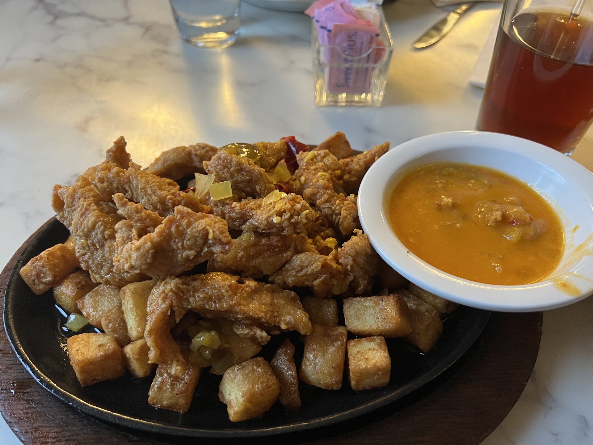 Edit May 2023: gonna have to revise my review and remove a star, quite frankly I should remove 2. Firstly they took the seasoned potatoes off the menu some time ago, the ones that came with the garlic wings you see in my photos. A staple, gone. The excuse? We can’t get them. Ok get your own potatoes, dice them, season them and fry them. Supply chain issues are not an excuse anymore. Second, it now takes upwards of an hour to get food. They cannot handle even a half full dinning room. They are lucky the food comes piping hot and tasty. But is it worth a crazy wait? That’s for you to decide.