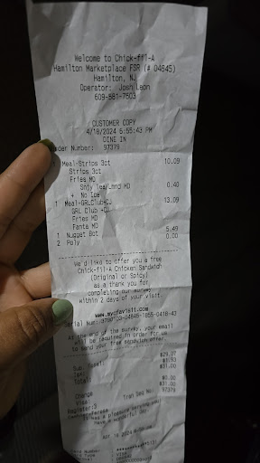 Read moreWe arrived at this Chick Fil A location at around 10:20 AM. There was a long line for breakfast, which is okay, I work in the service industry so I can understand being in the middle of a rush. Once itâs out turn to order, itâs 10:38 AM. The breakfast menu was still shown on screen. We ask for a #2 (Chicken bites). The woman who was âtaking careâ of us, ANGELA asks if we wanted pepper Jack cheese, lettuce, and so on. And weâre all in the car sitting there a little confused, because to our memory, breakfast chix bites donât come with all of those veggies. So we ask, âCheese for the breakfast chix bites?â To which ANGELA replies, âWe are no longer serving breakfast at this time.â To which we reply, âOh, well we were waiting in line and the breakfast menu is still up.â ANGELA responds, âI apologize, we are no longer serving breakfast at this timeâ Ok. Cool. So we order: 2 SPICY CHIX DELUXE MEAL W/ SWEET TEA, ICED COFFEE, DIET COKE, 1 REGULAR CHIX SANDWICH MEAL WITH COKE. sauces: RANCH, CHIC FIL A SAUCE, HONEY MUSTARD. Angela just responds saying âpull forwardâ Not accommodating, not sweet, not even nice. As I'm typing this, I'm looking for the hospitality, but just canât seem to find it. We pay, we get our food. To our DISBELIEF when we get home, we had lemonade instead of sweet tea, and no RANCH, AND HORRIBLE SERVICE!!! I hope that Angela can heal from whatever was giving her such a rough day, because sheesh. From now on, Iâm going to have to be the annoying person to triple check my food and drinks before going home. This chick fil a has certainly taught...