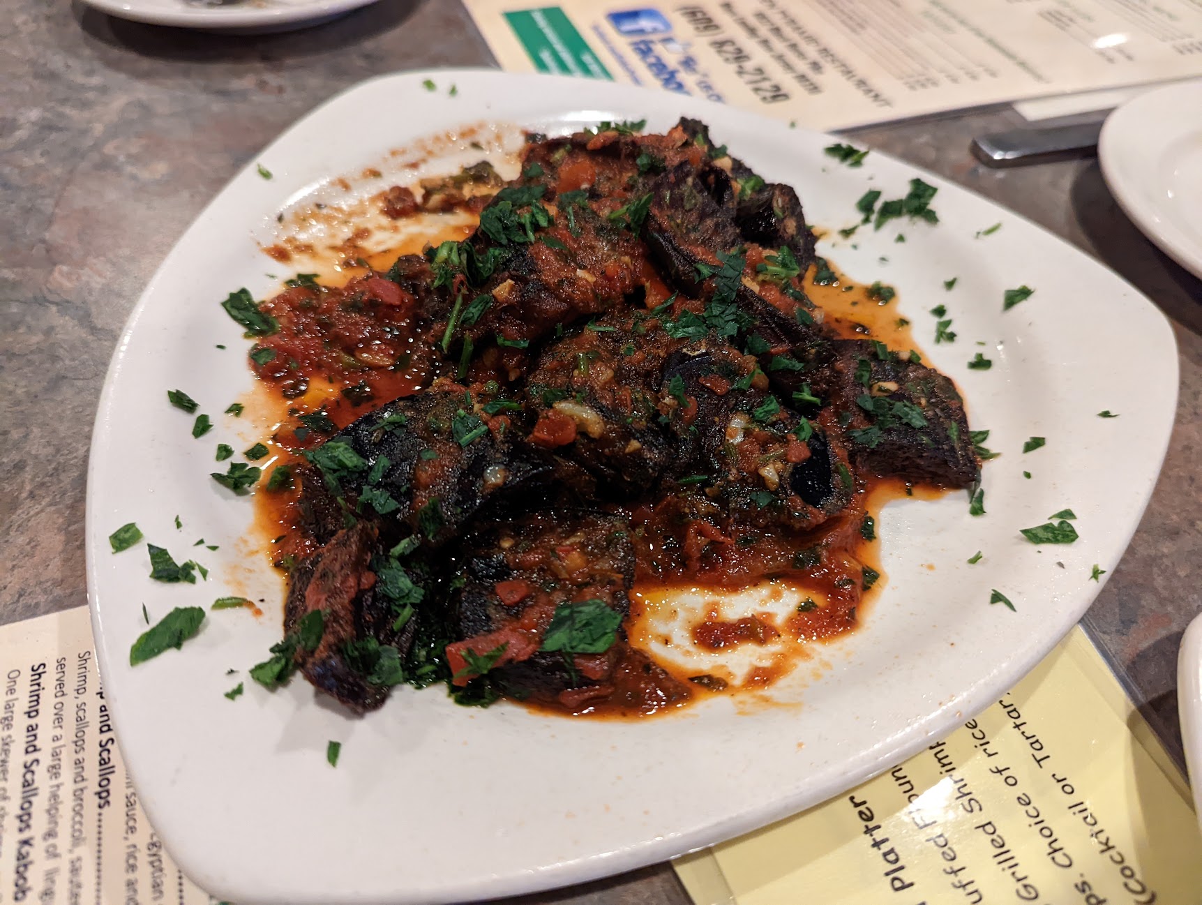 As for the food, we were blown away. We started with the broiled crab cakes, which were tender and flavorful. But the real stars of the evening were the Egyptian lamb stew and the kofta. The lamb stew, ordered as spicy as they could make it (and how spicy it was!!), hit the spot perfectly—it reminded me of my own mother’s beef curry, taking me back to some of my favorite dinners with my own family. The kofta was easily the moistest, most tender kebab I’ve ever had. And the portions? Absolutely huge. We left with leftovers and a baklava to go, feeling like we’d gotten incredible value for our money.