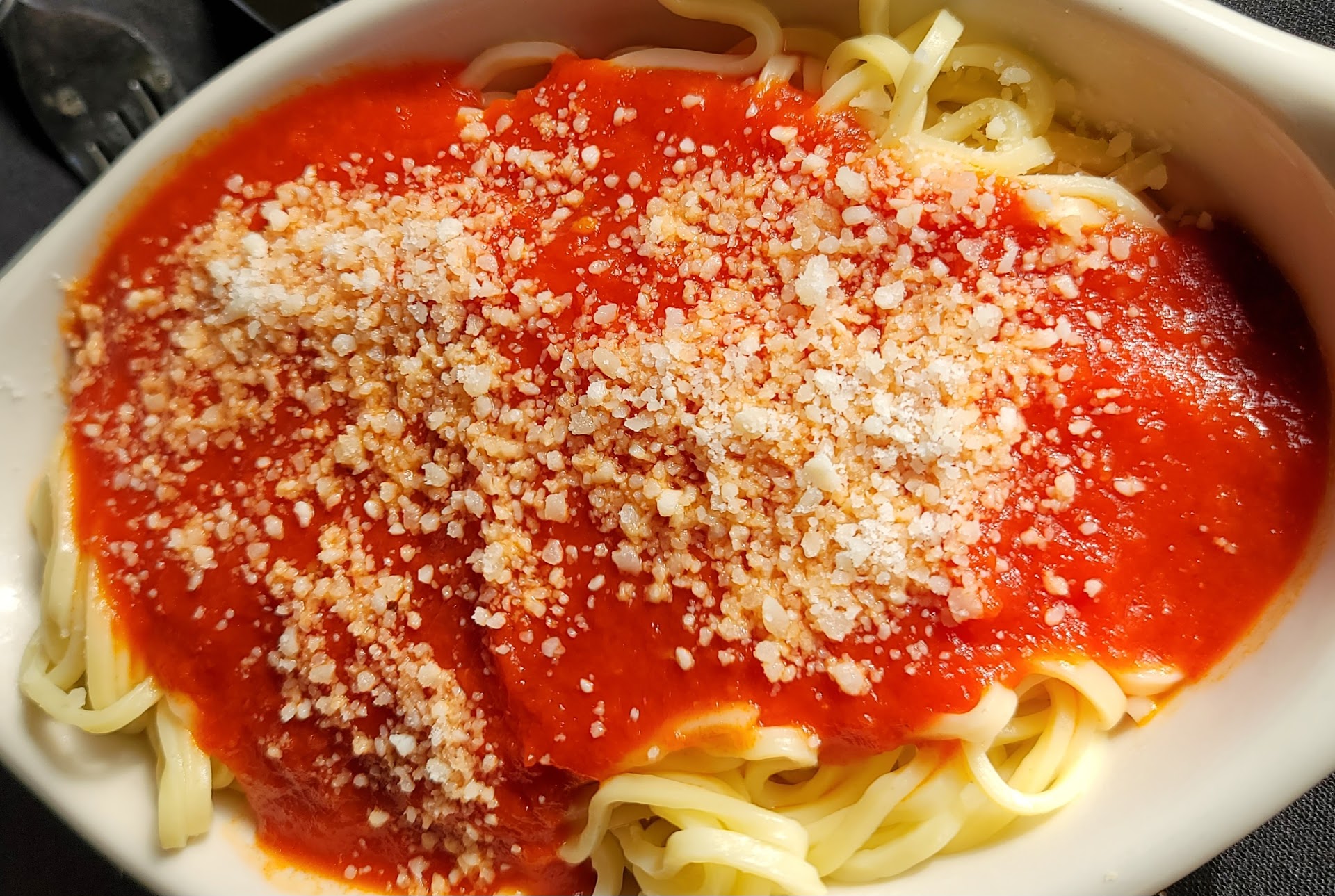 My husband had the menu special. Twin lobster tails with crab meat stuffing and their homemade pasta AND homemade sauce. He raved about everything. The lobster was tender and the stuffing was mostly lump crabmeat. However, he is still talking about the pasta. I know this phrase is over used but⊠he was blown away. Then Sarah came back with another round of bread! Needless to say we were stuffed when we left and the price was absolutely more than reasonable.