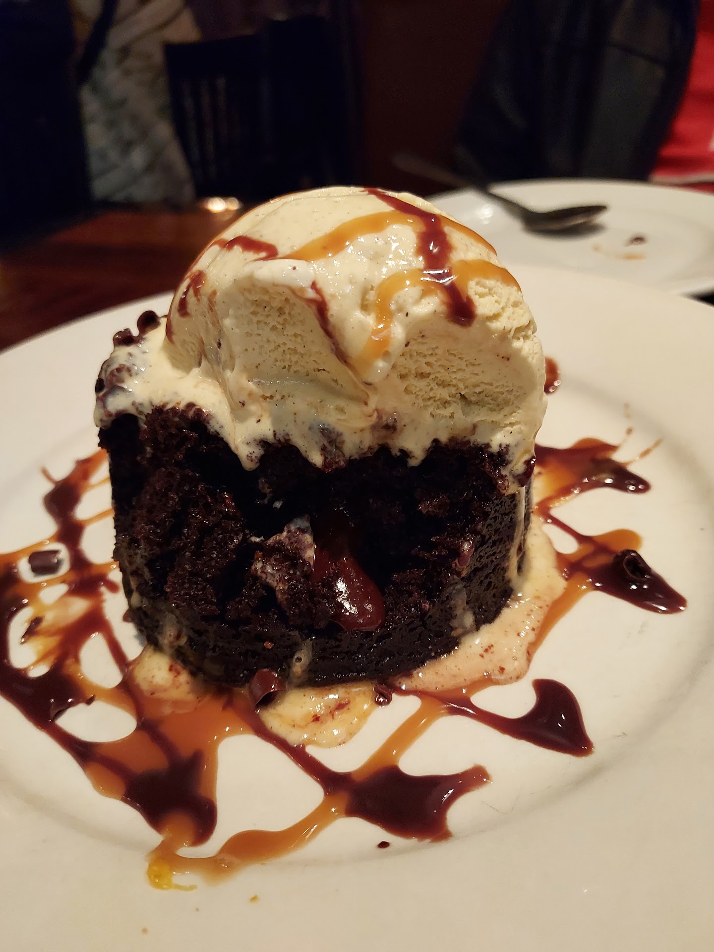 For dessert, we had a stunning chocolate lava cake with vanilla ice cream and caramel syrup drizzled on top. It was big- great for sharing - and delicious. The size meant there's a generous amount of lava, which is my favorite part.
