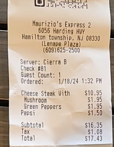 My stepmom had ordered a jumbo pizza and 30 wings for her birthday. she had told me to go to the Maurizio’s on Harding Hwy to pick it up. I drove over to pick up the food and found out that she had ordered the food from the Maurizio’s on the black horse pike. My sister and i Immediately said that we we’re sorry that we were gonna head over to the other Maurizio’s to pick up the food. Without hesitation, Giuseppe (an employee) tells me that he can get the food delivered over to Maurizio’s Express 2 so we said yes. After finding out that the food would take a while to get delivered, Guiseppe offered to drive over to the other Maurizio’s himself and bring the food to us. It was so kind of him. We told him that it was fine and that we could go get it but he insisted. He gave us a gelato on the house and he brought over our food as quickly as he could. I tried giving him $20 as a thank you because he really didn’t have to do all of that but he said “no, it’s okay”. wonderful costumer service, wonderful people and the food is always great! we’ll never...