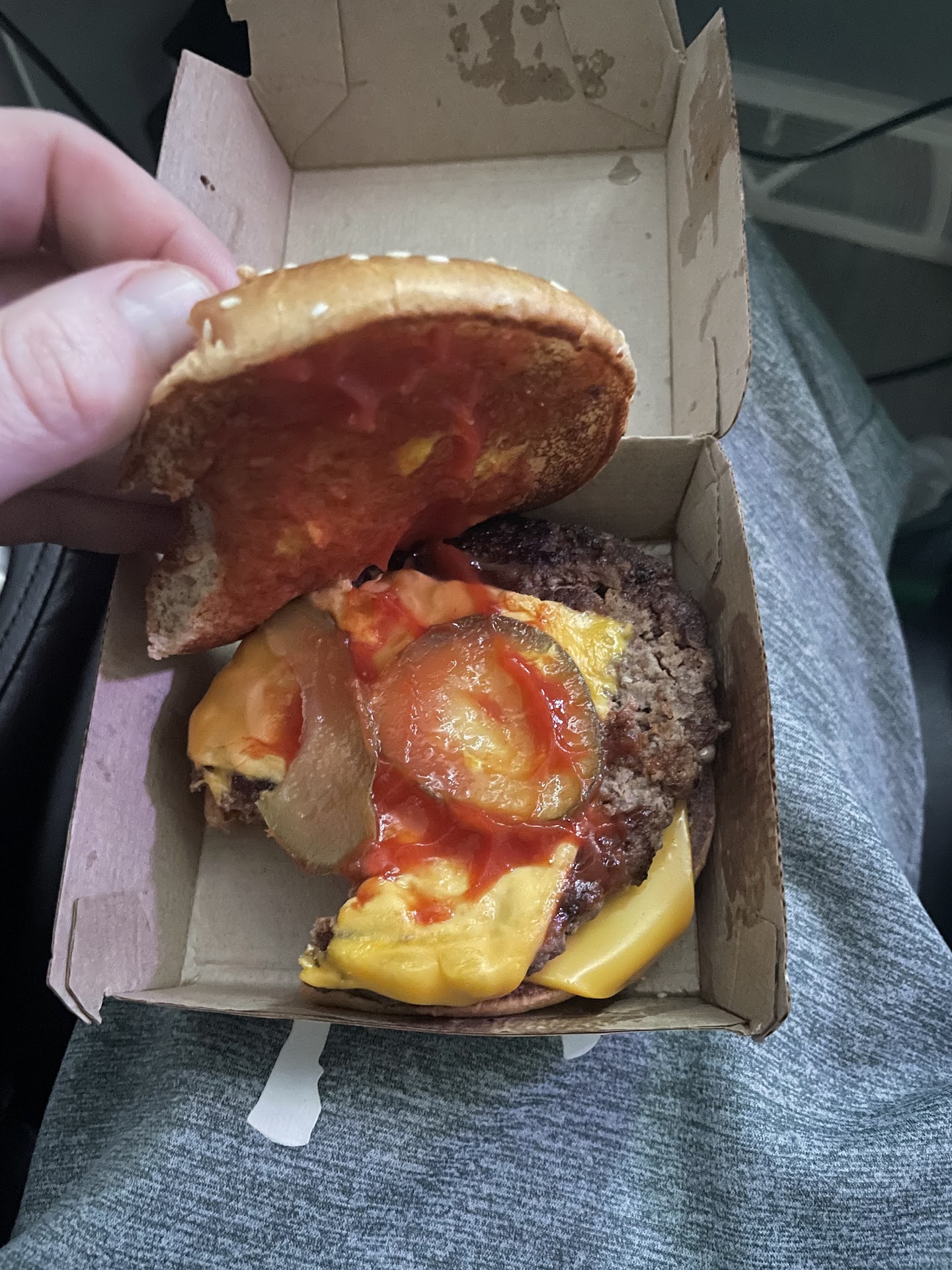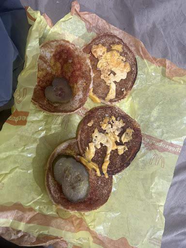 Read moreThere$ 7 dollar double cheese burger medium fry 4 chicken tenders. MC DONALD'S ruined there chain my double cheeseburger didn't have minced onions but hole onions the meat has so much grease from 10 burgers that it looks like someone spit that's the second time I threw out first burger the frys soggy and small in paper not medium in cardboard like picture the only thing edible was the 4 chicken nuggets& the small soda not medium like picture The restaurant smells like old grease and everything feels like it also i can't believe that they destroyed this chain the only way you will save this restaurant is get rid of those storage warmers i have to eat grease from 10 burgers will not work not at any price it looks like spit. Fresh to order was better and waiting for fresh food not my old 4 hour greased food only i guess not the service fought but for small cup...