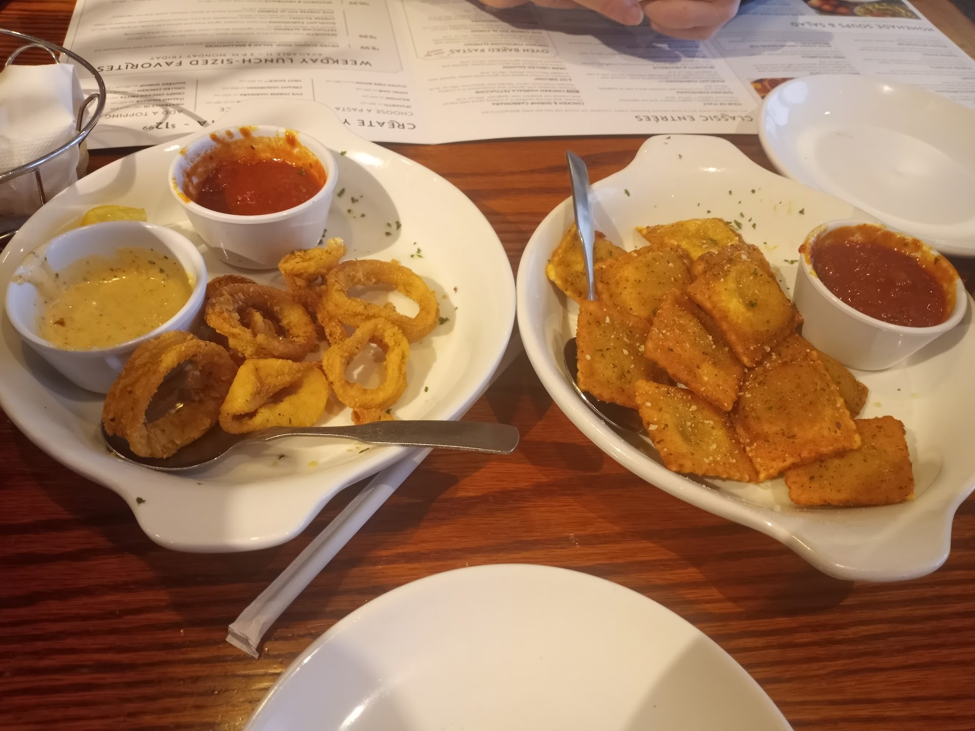 Read moreWhat can you say about this place? It is just Olive Garden. No matter the location you can expect the same quality of food that you order! The prices are reasonable and they tend to have a number of meal deals for eat in service and take home. I went with my bf and the kids. We all got their salad, and a meal. The waitress was attentive, friendly, fast and observant. We ordered the shrimp alfredo, cheese ravioli and 2 chicken fettuccine alfredo orders, and I got the soup and salad combo. If you know Olive Garden they do pasta pretty good. If you aren't familiar with this place there is no need to worry as any pasta order is cooked just right, sauced proportionately and always both visually and taste appealing. Every time there was a empty bowl she cleared the table and asked us if we wanted more. As the bread is limitless and I was with a bunch of bread lovers! The soup/salad meal is all you can eat. A bowl was all I was able to eat. It is filling and satisfying. The dressing on the salad is addicting so much so I can get my one son to eat salad when were here. Otherwise he says it is tasteless. I don't know if that says I make bland salad or if I have to give a point to Olive Garden but, other way I am a happy mom when we eat here! The salad is almost hand picked for extras two olives, two slices of tomato, 2 banana peppers, and so on. The plus you can order another for your table if wanted. The waitress saw when we were all finished and she brought over take home trays as my bf and the kids had leftovers. They were all able to finish the remaining for lunch the next day. It microwaved well and evenly. They all said it was as tasty as it was when first ordered the previous day! That is always good especially when having leftovers! If you want a laid back experience with decent food you do not have to cook or pay a fortune to then this is your go to place. It is welcoming for a good family night, date night, friend pre game dinner or any other event/situation! If you go just take it easy, enjoy the atmosphere and relax knowing you will not be having to do the clean up upon finishing the meal! They do serve alcohol and their menu offers suggested pairing. Have a drink non or alcoholic and enjoy! I hope this helps!!! Stay Safe...