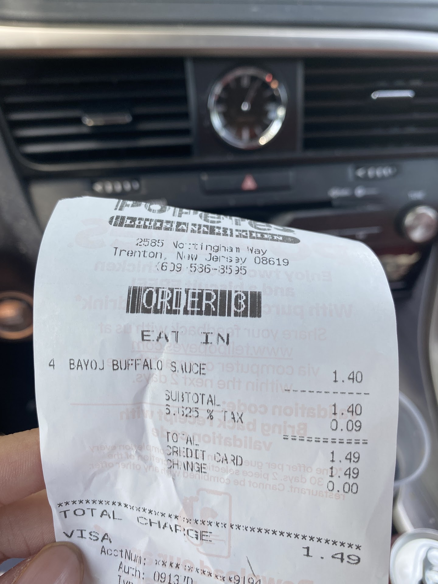 Ā Ā Ā Read moreGood Food but Out of Tenders like most Popeye's. I was just at this Popeye's for the first time probably since around 2000 or 2001 and while the food was just as good as any other Popeye's, there are two problems that I must address. First off, it seems like EVERY Popeye's while having excellent food, has management issues and whether it be this, the Olden Avenue, or Levittown location, it seems like they are ALWAYS out of chicken tenders or some other type of chicken!!! So if you want tenders, drive on I-95 S down to the Chesapeake House rest stop in North East, MD; they'll have the tenders, or even closer, at the Delaware House Welcome Center in Newark, DE. That's SERIOUSLY how far I've been when I've EVER had tenders!! The second issue is the interior of the store. The layout and the cash registers look like something out of 1997, and are just primitive for a fast food chain restaurant in 2012. There is no drive-thru so you have to go inside, and the people working there were actually nice and quick. So if they can get supplies in on time like KFC usually does (unless someone keeps buying chicken in bulk) and if they updated some things and added a drive-thru, this location could be improved A LOT! Still good chicken nuggets and decent cole slaw, although the biscuit was a little too dry so I think I'll take more of my business to KFC unless I find myself traveling south on I-95 through Maryland...