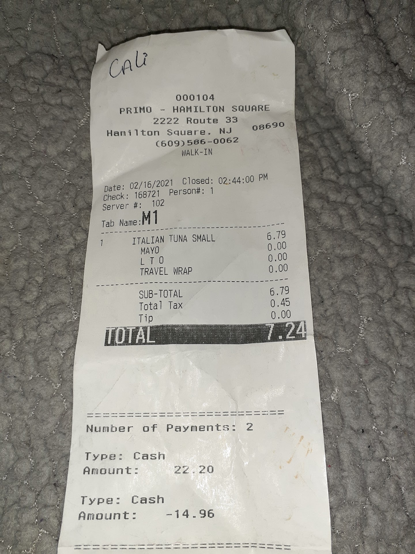 Read moreTheir new ownership change is clearly showing. They seem to have phased the multiple good kettle chip flavors and replaced with cheaper chips, and also drastically decreased the amount of meat they put on the sandwiches while increasing the prices. You taste more vegetables than meat on the sandwiches these days, which was never a thing in the past. As a comparison, I recently went to a different primo hoagies in the area, and they put plenty of meat on the sandwiches. I have been going to this Hamilton primo for years, but unfortunately with the way the new management has ruined the food, I might have to stop going. Stop scamming customers. Putting a small amount of meat on sandwiches is what Subway probably does, not...