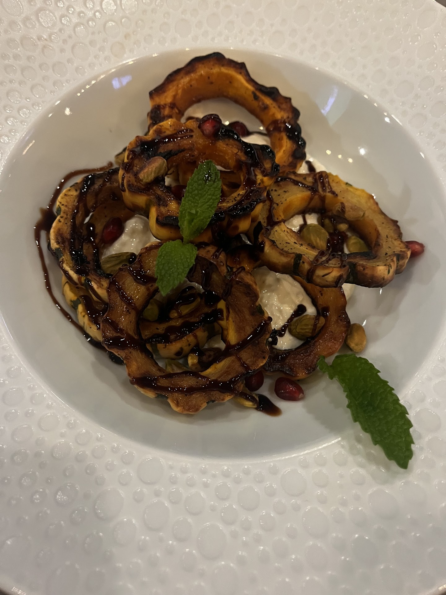 And then there’s the menu—a culinary masterpiece as bold and refined as the ambiance. Each dish is crafted with meticulous attention to detail, balancing classic flavors with innovative twists. Start your meal with an enticing selection of appetizers: • Clams Casino bursting with fresh, briny flavor. • Beef Tartare paired with indulgent bone marrow. • Crispy Brussels Sprouts served with a tangy horseradish sour cream. • Tuna Crudo that melts in your mouth. • Truffle Fries—a decadent crowd-pleaser. • Beet and Blood Orange Salad with pistachio, shaved fennel, and balsamic for a refreshing yet complex bite. • Delicata Squash & Stracciatella topped with pomegranate, pumpkin seeds, and champagne vinaigrette—a celebration of vibrant, seasonal ingredients.