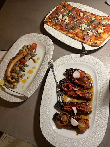 This was an absolutely phenomenal experience and a much needed addition to Hamilton which is sorely lacking restaurants with great food and drink. I only found out this place opened and Hamilton Tap and Grill closed last week and I took one look at the menu and knew I needed to come try it out. I came in and sat down at the bar which is quite elegant. The bottles are all lit up so they are easily visible, there is a ton of room, and it was all visually appealing. Tyler quickly came over, got me situated with menus and water, and told me to let him know if I had any questions. I put him to the test right away and asked him to tell me a little bit about this place and what his favorites were since I had never been there before. He happily obliged and listed out some of his favorites while at the same time telling me about Raza’s vision of an elevated dining experience right here in Hamilton. I was impressed and I settled on the squash salad and the steak tartare for my two courses to begin. I also let Tyler talk me into a tequila espresso martini which was pretty good! Definitely needs to be shaken a bit more, you wanna a really thick head on an espresso martini, but it wasn’t too sweet which is a common issue in many espresso martinis and I was definitely satisfied. The squash salad came out within 2 minutes which has to be a record for someone receiving their first course, and it was quite good! The presentation was beautiful and the flavors worked wonderfully together! My only critique is that the squash was slightly under-seasoned to my liking but it was a lovely first course. Around the time I finished my first course, Madison the other bartender on duty that evening, came over and introduced herself. She asked me if I enjoyed my drink and if I was looking for something else. I told her I was looking for a glass of wine to pair with my steak tartare. I saw they had two Italian reds on the menu by the glass, I love Italian reds, and asked if I could take a taste of both. Madison eagerly accepted my proposition and ran over to grab me a taste of both which was very kind and hospitable of her to do! The Belnero they have by glass is what I settled on, it was very dry and nuanced and I knew it would pair perfectly with a fatty steak tartare dish that included bone marrow. I received the bone marrow dish and I could not help but remark at how amazing the presentation was. It was a generous portion as well and the flavors just melted together in my mouth. The chips had either lemon or lime zest on them which was a phenomenal touch, the steak tartare was dressed in a delicious sauce, and the bone marrow was so flavorful! My only critique is that half of the bone marrow was super hot and melted in your mouth while the other half was lukewarm and was not quite as tasty as the other half. Still a superb dish and I highly recommend it to anyone who doesn’t mind raw cow! I had to get dessert because I was so impressed with everything else and Tyler convinced me to get the whipped chocolate cake and I paired that with one of their dessert cocktails, I believe it was called the “French connection”. The dessert was fabulous, the entire dish was chilled which was surprising and the cake itself had a texture unlike anything I’d ever had before. It was slightly off putting my first bite but there was so much flavor that I put that aside and really bought into the dish. The hazelnuts were a wonderful touch and again it was not too sweet which I loved! The French connection is a riff on the godfather I believe, and it was pretty good! Amaretto and cognac work well together and I asked for the addition of a lemon twist which was just the icing on top! It was much fruitier and less peaty than its godfather counterpart and I would definitely recommend people getting it with the lemon twist as it adds a bright lemon note to the entire experience. Overall for them only being open about a month, I am impressed, and that’s coming from someone who is very particular about food and drink. Come check...