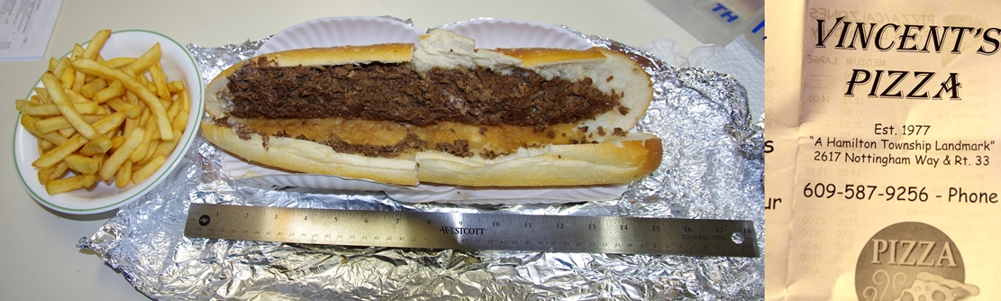 Read moreI got a pizza steak where my wife got the chicken cheese steak, I have to admit, there was like barely any meat and was very average, but it was nothing compared to my wife's chicken cheese steak which tasted like it contained lots of cheap meat and was just horrible in general. I probably wouldn't of said anything though if the person who answered the phone didn't hang up on me after asking where the delivery person was after over an hour, oh and he also wrote the wrong number down. I understand delivery isn't going to be as good as physically eating it there, but I expected something better from a place that is spoken so highly of. If you want an excellent chicken cheese steak in the area there is a little known pizza place in Columbus called "Bella Mia" those are incredible...