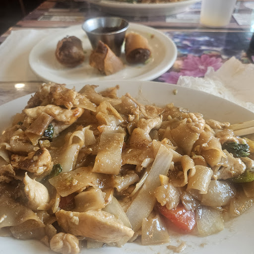 I have to say it was a breath of fresh air to see a thai and sushi restaurant in such a small town. I'm a huge fan of both, which is probably my two favorite foods. The restaurant is a little old feeling but felt clean, there quite a lot of decor and I appreciate the unique feel. The staff were nice and I enjoyed trying the food but I just was not a huge fan. I love the boba tea, it was a bit too sweet for me, it tasted like a Shirley temple with tapioca pearls and I couldn't help but finish it, would recommend if that sounds good. I had the "soup of the week", Tom Yum soup. Which I thought was odd it was printed on the menu although it's a common soup and it's a small town. I just feel like it may be a soup of forever. I tried it and it had a very good bite to it, nice and sour and was quite spicy. I just feel that the soup was quite vegetable heavy that I was not expecting, I'm used to having (typically) shrimp or prawns in my Tom Yum soup. I did order the tofu in it as I knew I was going to try meat in my dinner so this may have just been my fault. There were also whole grape tomatoes floating in it that seemed a little odd to me by tasted fine. Then I had the drunken noodles. The noodles were hot but all lumped together in one large heap, they were difficult to separate and I found lacked much flavor. I appreciate the spice on the noodle but there just was not a ton of flavor. I thought the pad-thai which my girlfriend had was much better. The perfect amount of sauce, a little heat, and a decent flavor. I just felt that the food was still lacking a bit of flavor and was overall only ok. This is that I've had a lot of Thai food in my life though and this restaurant is a good choice in such a small town. I apologize if I'm overly harsh. Overall my experience was just a little underwhelming and when I paid ~48 $ for two people it just felt a little much to me. I would not tell you to avoid here, especially if you are looking to try Thai food or enjoy sushi but for me it's just a little too much for the price. I forgot to mention the portion sizes on the noodles are massive by the way, almost enough for two people to share which may be an explanation...
