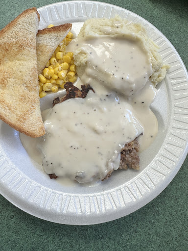 Read moreThis restaurant is in a double wide trailer, with stained carpet, drop ceiling tiles, hideous wood paneling, and battered tables and chairs. I had a bacon cheeseburger and regular fries. The beef was flavorless and chewy, sitting on a smashed, uninspiring store bought bun. The bacon was crispy, though, so points for that. The fries were of a frozen variety (meant to simulate "crispy") that I don't care for. They also had a buffet which seemed to consist entirely of fried chicken. Staff were friendly...