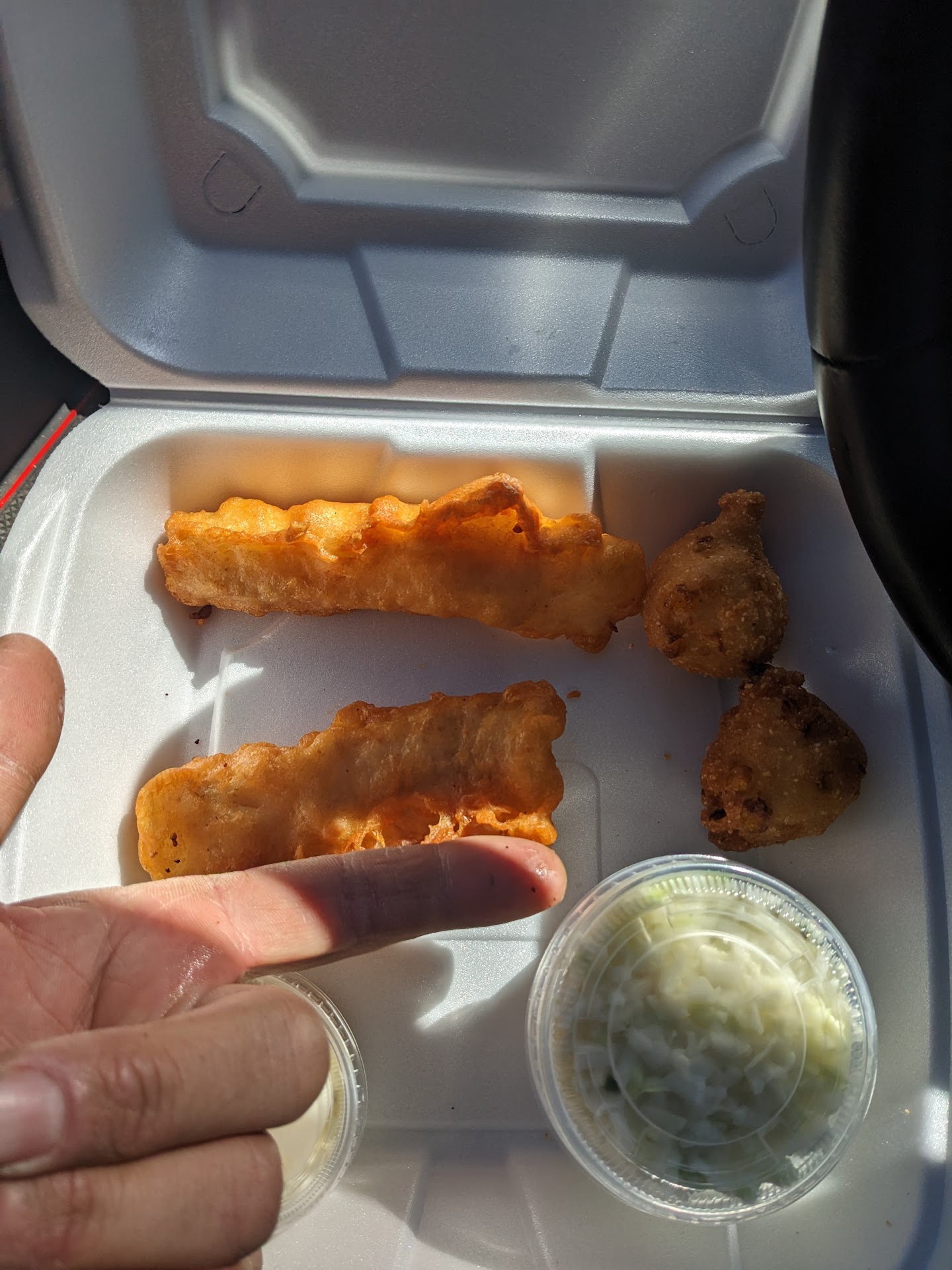 Where has Jocko's been hiding my whole life? I got the fish & tenders value meal so I could try both the fish and chicken. Wow! Scratch made biscuits and cole slaw? Both excellent!! The fish was nicely battered and perfectly cooked. The fish inside was moist and flaky. And, large cuts of fish too. Way beyond expectations for a fast food restaurant. 🙂 About that value part of the value meal... The chicken tenders looked and smelled fantastic, but I chowed down on the fish and sides to the point that I was already full before I even got to the chicken!! Those chicken tenders were gigantic! It looked like they (Jocko's) took a single large chicken breast and split it in half to make the 2 tenders. I can't wait until I'm hungry again to try them too. Now that's true value for just $13.99, INCLUDING a soft drink as well. I'll be back here soon and often. Great job Jocko's. I now understand why your motto is "World famous". Only 3 stars on the atmosphere, because it needs to be updated, but the place was spotlessly clean!! Again, well done...