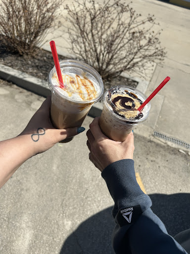 We decided to stop for some coffee on our little road trip and found this gem! I got a large caramel and white chocolate cold brew with cold foam and whole milk! My mom got a large iced s’mores drink that was recommended by the lady working! These drinks are so good and worth the wait ( which wasn’t long at all ) and we only paid $20 with tip for everything we got. The cups are a little flimsy but for what I’m assuming is a small business, it’s alright. I just have to be careful with my clumsy self! I also got a cookie, it was a huge chocolate chip one that was a little crunchy but the center was super soft and so sweet. My mom got a s’mores donut that came out so warm and tasty, we will definitely be making the hour drive back out here to try this place again. The parking was free and there’s plenty of spots. They also had multiple milk options to choose from if you can’t have regular milk which is super nice. The inside was very clean and so pretty,...