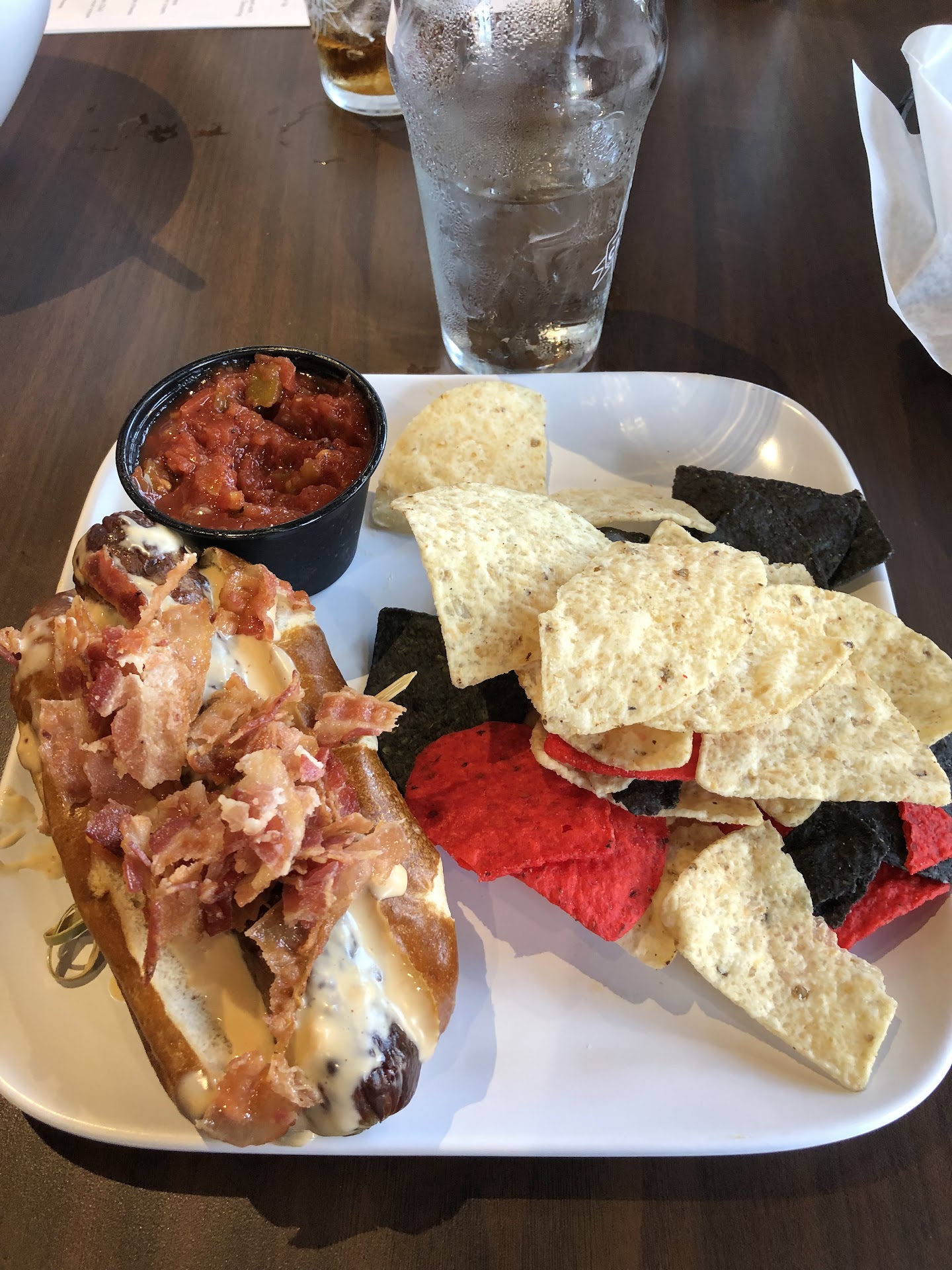 Read moreNot bad , not great. Service is great except for the hostile greeting of "YOU NEED TO WEAR A MASK IF YOU STAND UP". I said "you can assume I have a medical condition" and that was the end of that. There is really no need for that. And don't get me started on the insanity of forcing unsanitary cross-contaminated masks which are spreading the virus on every person. Everyone I know who has worn a mask has gotten covid. For the dining experience you get a little bit of food with a lot of calories for a steep price. It would have been much better if I wasn't paying for the entire bag of chi-chi's chips and only getting a handful. Or 1/4 cup of generic thick salsa that tastes like the one that other chain restaurants serve which is mostly flavorless. The brat was good but looks smaller in person than on the pictures. The bartender was helpful in picking out the perfect craft brew based on what I told him I liked. After eating I was wishing I had gone to a local Mexican restaurant I like which has the most amazing self-made chips and self-made salsa with 3 enchiladas for about 1/2 the price. This place needs to step it up and make their brats more like the ones at The Senate in downtown Cincinnati if they are going to charge that...