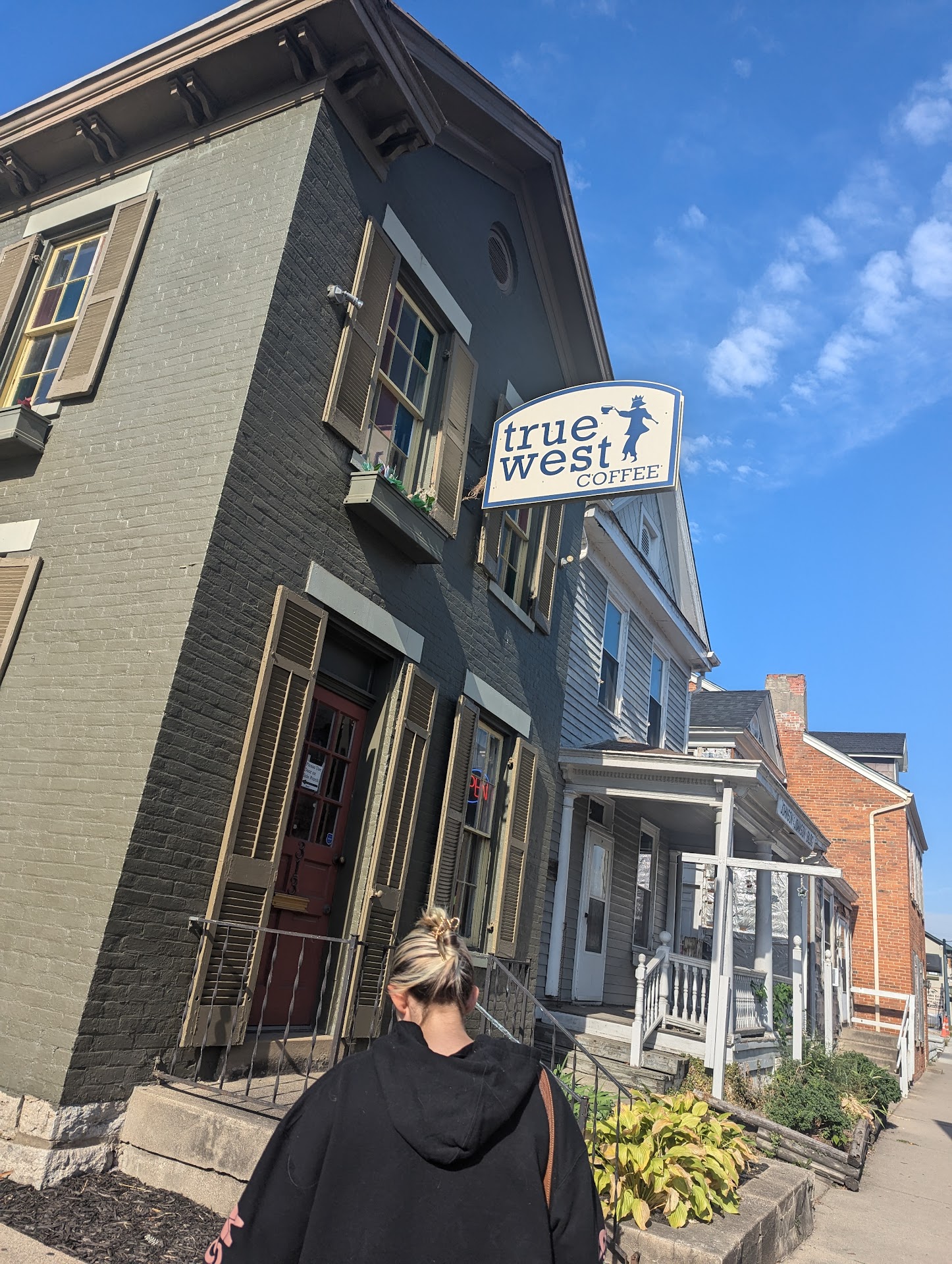 My boyfriend, my 10 month old puppy, and I were staying in Hamilton for the weekend and needed a quick breakfast. We stopped at True West Coffee and went inside. I immediately picked up my puppy to hold her in my arms and order, however one of the staff let me know that they only allowed services animals in the shop, so I gave my boyfriend my order and went outside to wait on the porch.