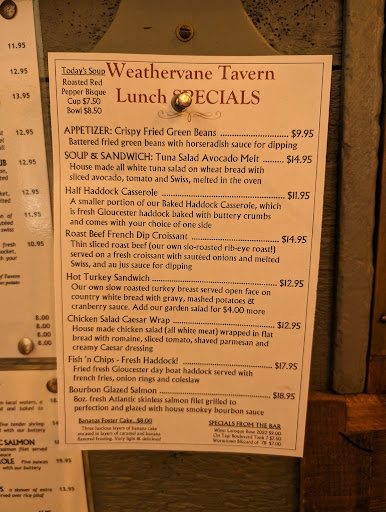 !!HORRIBLE EXPERIENCE WITH DEBBIE THE MANAGER!! As devout weekly locals coming here 35 yrs, Debbieâs behavior has been increasingly downright nasty towards both staff and patrons, and last nightâs straw broke the camels back. Out of courtesy to my hard-of-hearing guestâs request, I asked Debbie âdo you know if your salmon is farm or wild.â Thatâs it, all I asked, gently. Debbie postured bulging eyeballs up in my face, raised her voice in front of the whole restaurant and shot at me âITS FRESH!! IT SAYS IT RIGHT ON THE MENU!!!â dramatically throwing her arms up rolling her eyes shaking her head is disgust, turning and walking away. She then went on barking orders at others, physically grabbed and pushed forward dear Mary saying âGET MOVING!â. Then UNPROMPTED, Debbie proceeded to come back to our table 4-5 times, combative, instigating trouble pushing herself into my face âITS FRESH!!â âI TOLD YOU ITS FRESHHHH FRESHHHHHHH!â âYOU OBVIOUSLY CANT READ ITS FRESHHHH!!â I replied âno I simply asked if it was farm or wild. Thatâs all I asked. A question. No problem.â But she wouldnât quit. Debbie was like a rabid dog, coming back at me (4 of us) making a huge scene, then screamed âIM THE MANAGER!!!! AND YOURE THIS CLOSE đ¤TO BEING PUT ON THE LIST NEVER TO COME HERE!! (Then points to all of us) âNO MORE SERVICE TO THIS TABLE!!!â The horrified couple sitting next to us stated âOMG!!! sheâs getting worse each time we comeâ. To dear owners Paul and Kristen, and adored staff Mary, Caitlin, Janice, and other bartender Nancy?, weâll be back to hand our Christmas gift$$ to you. But for as long as Debbie is still employed at our dear Weathervane, we are all boycotting. No surprise thereâs been a loss of business there too. We all have bad days, and I never ever write reviews, but Debbie is an abusive bad apple, and sheâs single-handedly ruining our beloved tavern right under entrusted P and Kâs noses.