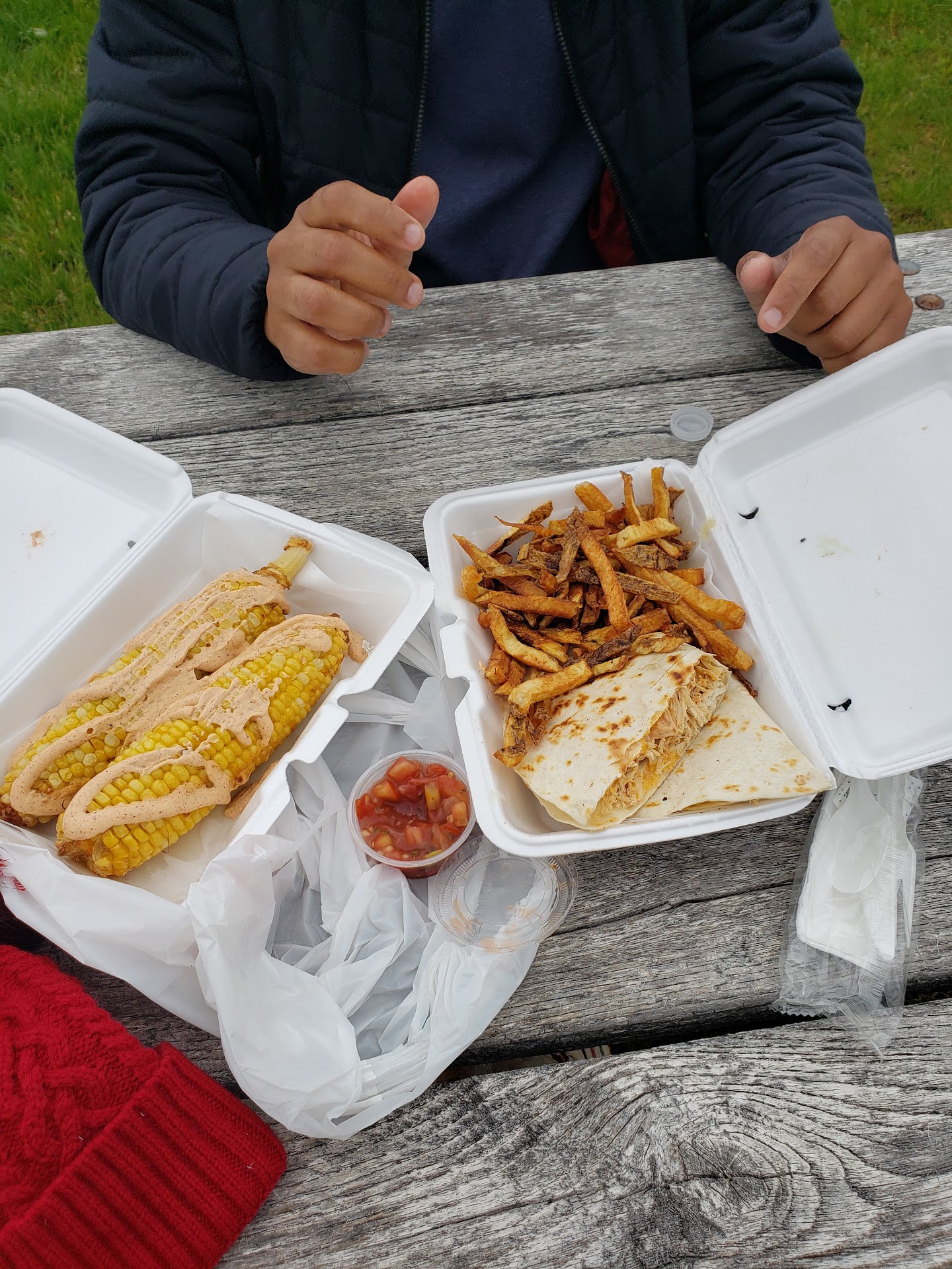 We sat at one of the money picnic benches in the park and for one reason or another were actually clean.