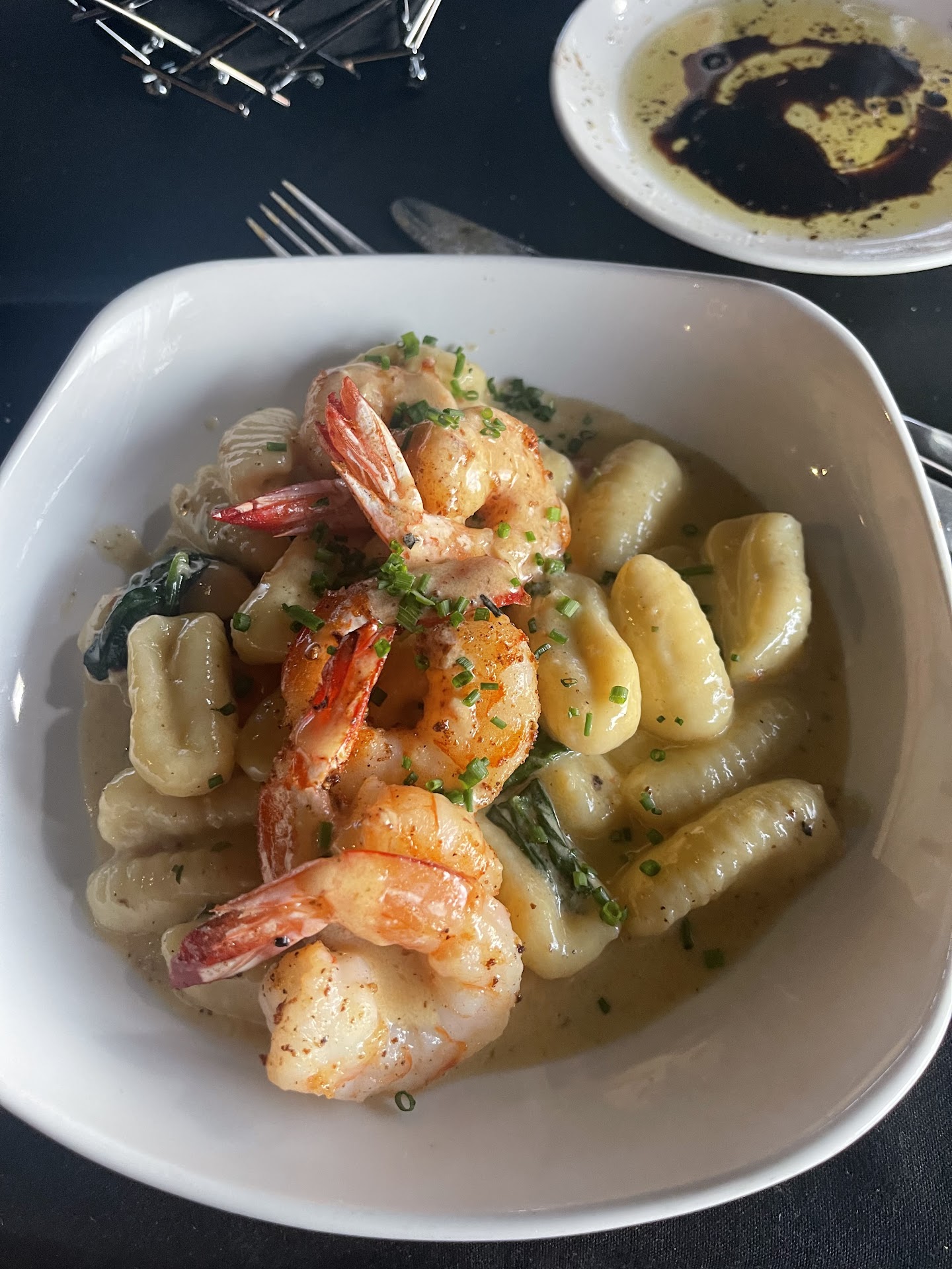When it did come out, I've had better gnocchi, the polenta was more like mashed - I don't know why i was expecting it to be rounds, and my wife's shrimp where just way too salty - according to her. I did not try them.