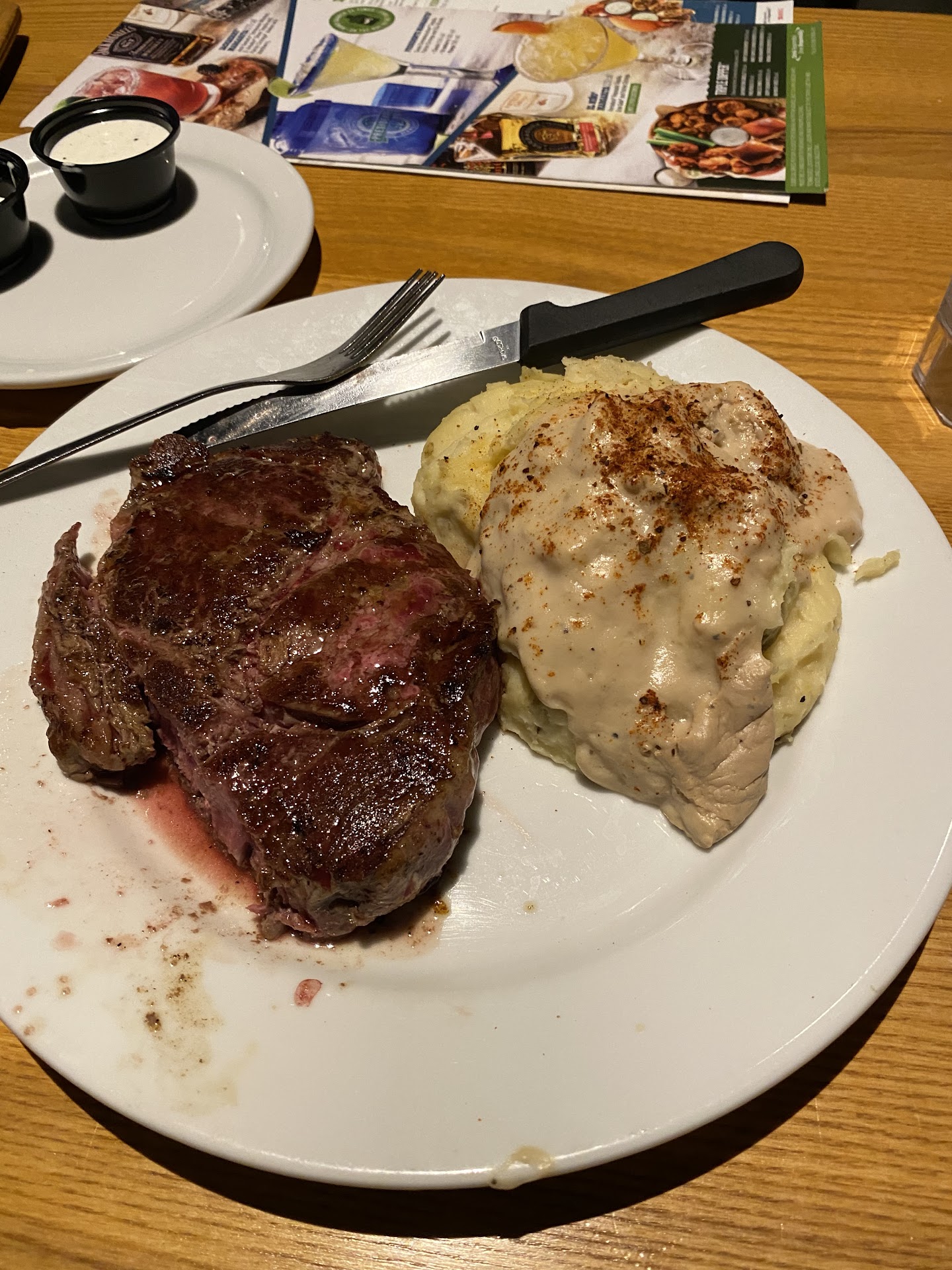 My husband got the chicken fajitas which smelled amazing and tasted very good. I took my food home and cooked it the rest of the way. Which i minused a star.... it still was good food. Back in the day I would have expected more from chilis but it comes with the...