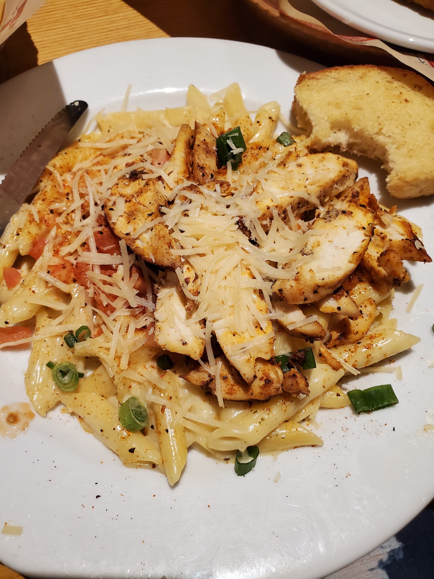 My husband got the chicken fajitas which smelled amazing and tasted very good. I took my food home and cooked it the rest of the way. Which i minused a star.... it still was good food. Back in the day I would have expected more from chilis but it comes with the...