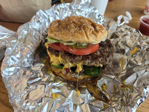 Read moreLast night while out with my family we decided to get Five Guys. This was my first time there. I liked that the restaurant was so clean and the staff was so nice. Everyone there gave superior service. The hamburgers are worth every penny spent. They were juicy, piping hot, and the toppings were garden fresh. Everything was so delicious. If you want a real gourmet burger this is the place to go. It was like going back in time when things were done right and with pride. One thing I thought was cute was they had a place where children and the young at heart could draw and hang their artwork in the restaurant. My daughter took full advantage of this. The finishing touch to this evening I enjoyed, were the peanuts at the door you can take home with you. It was truly an "All American" experience. Five Guys, Its like a little piece of...