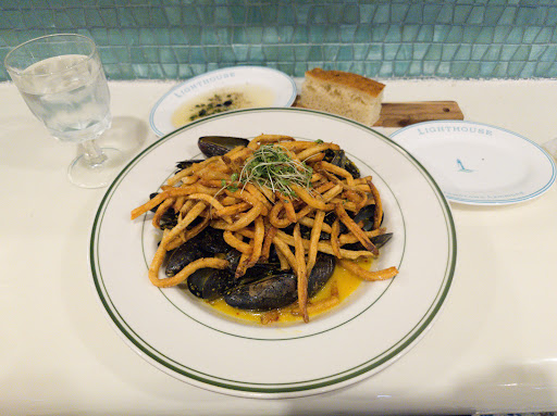 Lighthouse is the restaurant and bar Hammond has needed for LONG time. The architect and designer of this beautiful space absolutely understood the assignment — I travel quite a bit for work and always scouting out the best of the best places to dine & unwind when traveling—I felt like I was visiting another, much bigger city the moment I walked in. My wife & I joined another couple at Eclipse Bar at Lighthouse for drinks & appetizers—first time here for all of us and we were blown away with the level of care, attention to detail, & forethought put into this amazing space—from the overall design, lighting, decor, various sized intimate spaces, intentional menu, music, and just overall vibe of the place. The drinks were on point and the appetizers we ordered were top notch in terms of taste, temp, and overall appearance—not to mention served quickly once ordered. In fact, the cheese sticks w/marinara were so delicious that we ordered another before even finishing the first. We met our friends around 6pm and ended up spending over 4 hours here. We sat in a space in Eclipse bar called “Cosmos” which was just perfect for the 4 of us to have great conversation while enjoying the unique ambiance, drinks, & food. As the evening went on, the lighting changed, transforming to space (and the mood) into something even more beautiful and interesting. They had a live DJ that kept the music flowing in a way that kept us humming, singing, tapping our hands & feet, and just enjoying the vibe. The crowd really started to pick up around 7:30pm and continued to grow as the night went on. When we left around 10:30pm, the place was packed and hopping. It was hard for me to believe they would be closing in just 30 minutes (11:00pm) given the size of the crowd and party atmosphere which felt like it was just reaching its prime. I know they are still learning and adjusting to the business so hopefully consideration will be given to staying open until at least midnight on weekend nights—based on what I saw, I certainly believe the demand is there. If there was anything that could’ve made our experience better, it would’ve been two things—both easy to address—1.) temp in the bar area and lounge spaces felt too warm—all 4 of us mentioned something about the temperature and agreed that lowering the temp a few degrees would’ve have made it feel so much better; 2.) service in the lounge areas was pretty much non-existent during the first 2 or so hours we were there. When we first arrived, we asked one of the bartenders if there was service in the lounge areas and was told “no” (which took me by surprise), but offered to come over and take our drink & food orders once we got settled. After waiting a good 15-20 minutes, no one ever came over so I went back up to the bar to order drinks for me and my wife. I asked again and was told the same thing—this time the bartenders seemed less willing (and maybe a little unclear) as to whether they offered service in the lounge areas—still not clear or sure why there was confusion or even a question about this—this is typically the standard in other similar places. They did deliver the appetizers to us but beyond that, no one came to check on us or take more drink orders until probably 8:30pm. Again, not a deal breaker because we were able to get service by going back up to the bar. However, it would’ve made the evening that much more effortless and enjoyable had someone been out checking on us and taking our drink orders throughout the entire evening.
