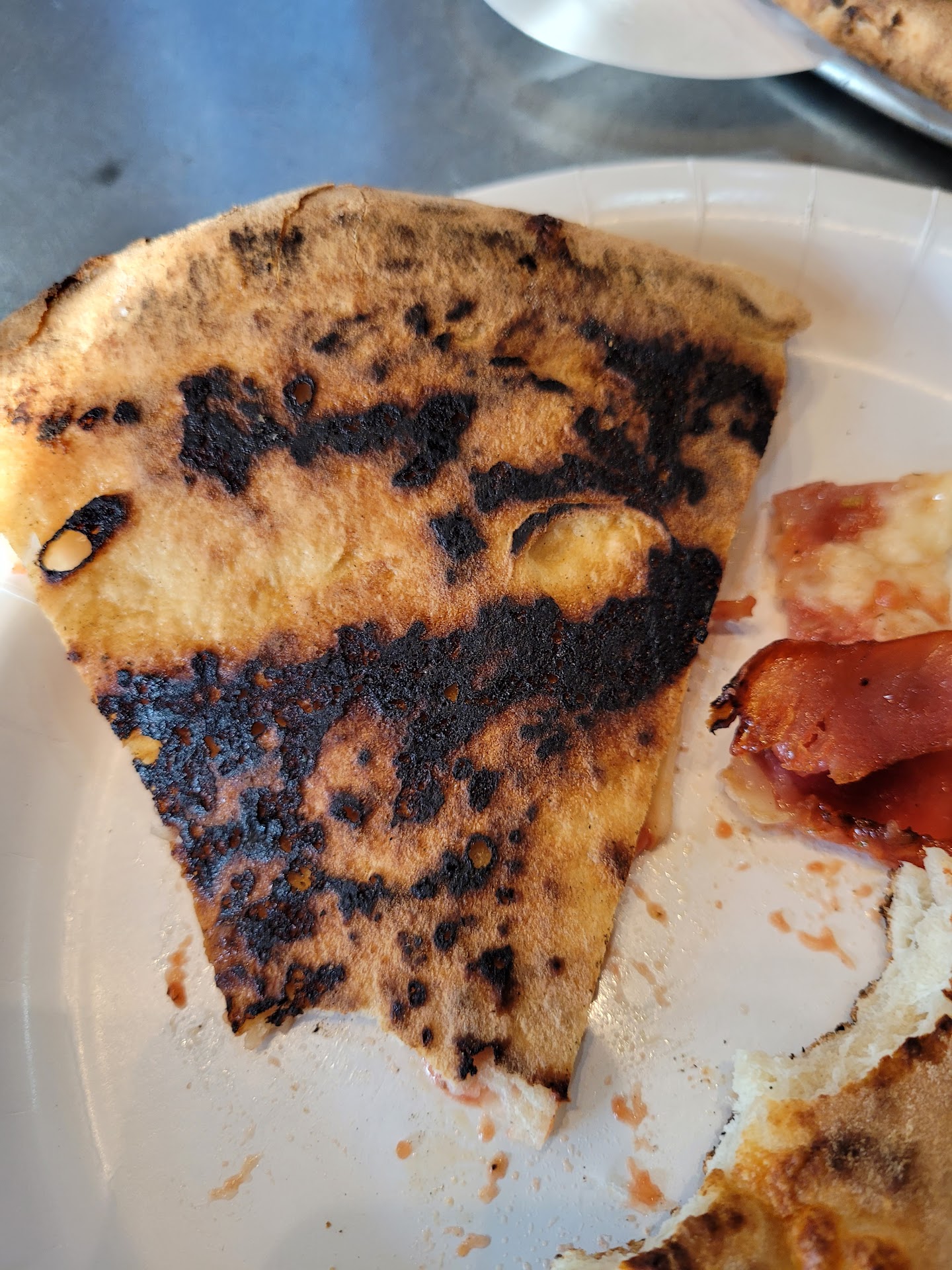 Read moreWe've been to this place twice and was very disappointed with my pizza both times. I thought on our first visit maybe it was a fluke, as all the other reviews give it such high marks, so we gave a second try. It's not the location or the atmosphere or even the service....it's how they burn all the pizzas. Look at my pictures. There were ample toppings, and those were great, that gave them one star. The fact that they have a very clean place and a dog friendly patio earns them a second star. But my pizza tasted like soot. The fact that it's the crust that burns- that makes the whole pizza taste like charcoal. Not sure why both mine and my wife's pizzas were burned both times, but that tells me it's a regular occurrence, not just a one off chance. If burned pizza crust is your thing, then this is the place for you. In response to the owners reply He indicates this is typical wood fired oven char....if thats the case then all of the other restaurants I've had pizza at that cook theirs in the same manner must be doing it totally wrong. LIT pizza might be just fast food, but they use a wood fired oven too. MY pizza NEVER tastes like charcoal from Lit. There's no reason for pizza to taste and look burned...and no excuse to say that's how...