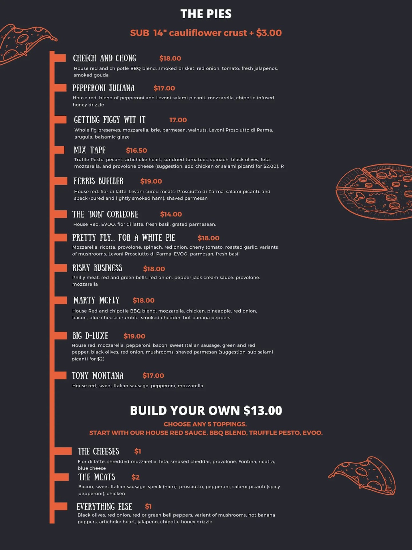 It has been almost a year since we last ordered, and the pizzas have changed for the worse. They use novelty sized meats, so be prepared for it to all come off in one bite unless your teeth work like a paper cutter. We ordered the Ferris Bueller and they did not bother to chop any of the meats, instead just threw whole slices on there, which make for a terrible eating experience. Not sure why they changed this up because other pictures show chopped pieces of meat. And I do not know why, but the pizza was watery. Not oily, watery.