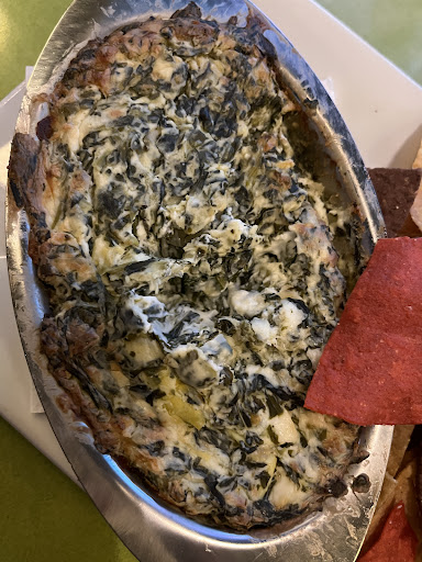 Read moreUnfortunately, the food here is pretty awful. I gave it two stars instead of one because the drinks are safe. Have been here more than a few times and I’m done. I ordered something really straightforward—spinach artichoke dip. It probably just needed to be heated up. It was very dry. It took a half hour to get it. You can see in the one photo the brown burn on the bottom. It had very little artichoke in it and huge chunks of cream cheese. Just gross. I was going to order something else, but after seeing how bad this was, I decided not to waste my money. My friend ordered the fried mozzarella. It was cold in the middle. In the past, I ordered the crab dip and instead of crab, it had lots of undercooked pepper. Another time, I got the gnocchi. I love gnocchi. It was awful—swimming in sauce. I have ordered the flatbread pizza before and it looks and tastes like a cracker. Most of the things I have ordered here have bordered on inedible. Either stick to the drinks or save your money. Go...