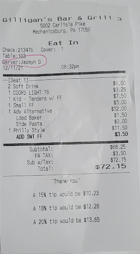 Read moreMy family and I went to Gilligan’s to celebrate what would have been my late grandmother's 90th birthday with our large family. Unfortunately, our experience was far from what we had hoped for. Despite having made a reservation well in advance, the restaurant claimed to have "lost" our reservation upon our arrival. To make matters worse, they conveniently had given our spot to two larger parties, one of which supposedly paid extra for their private room. Our family was never offered the privilege to “pay extra” when we made our reservation, of which we would have had we been VIP enough for this option. Clearly they favored whatever was going to make them more money and our family’s reservation meant nothing to them without even a curtesy phone call.