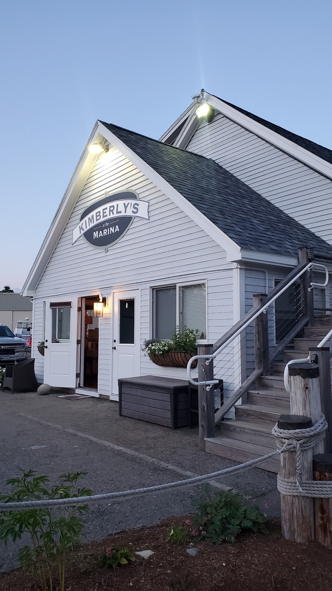 Read moreFriends asked us to join them for dinner at Kimberly's last night. It couldn't have been a more gorgeous summer evening in Maine, with the sun setting and a bit lf a chill in the air, so they had reserved us a table outside on the deck. I have to say that the view is probably the biggest draw of this dining establishment. While the service was friendly and prompt, they were out of a few menu items - lobster and clans I believe. I know that they're not to blame entirely for that.. but just wanted to mention in case you have your heart set on a specific dish. Never hurts to call ahead and ask. I had the bacon wrapped scallops with maple syrup. They were cooked to perfection and ac nice appetizer sized plate. My husband and friend opted for the oysters, which they said were delicious. Our other friend had the calamari which he was very pleased with. It was a large plate nicely breaded and fried. The bread basket appeared full of warm rolls. There is a nice craft cocktail menu. I choose the blueberry mojito which was okay. A bit strong and the smashed berries at the bottom made it hard to drink. The guys had beers. For dinner I had the lobster scallop risotto. It was good. Not great. Almost needed something else for a bit of excitement. But it was a nice sized portion.my husband had the chicken special - a panko pistachio breaded cutlet that he said was dry. However he enjoyed the kettle chips on the side. Our friends husband ordered the fried dinner which was a selection of fried seafood. It was a huge amount and he said it was delicious. Our fourth at the table had the blackened haddock. She liked it, but everyone agreed the side of veggies was underseasoned. We were full so skipped dessert, although the options looked great. Blueberry pie, carrot cake etc. The sun was setting and we had front row seats waterside. There's a nice fire pit area with corn hole set up. I would go back, but I think opt for one of the more traditional Maine seafood dishes. The fried haddock, fried platter, calamari, etc. That seems to be where...