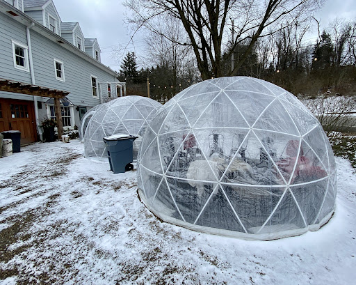 They have two igloos outside and you can reserve them online for $30/2 hours. This doesn't count towards food/beverage purchase, but it is well worth it. There is room for 8 and blankets and a heater inside. It was around 35* that day, and we were comfortable inside without needing hats or gloves or blankets. We very much enjoyed the hummus plate and bread with oil as a snack. It was more food than the two of us could eat.