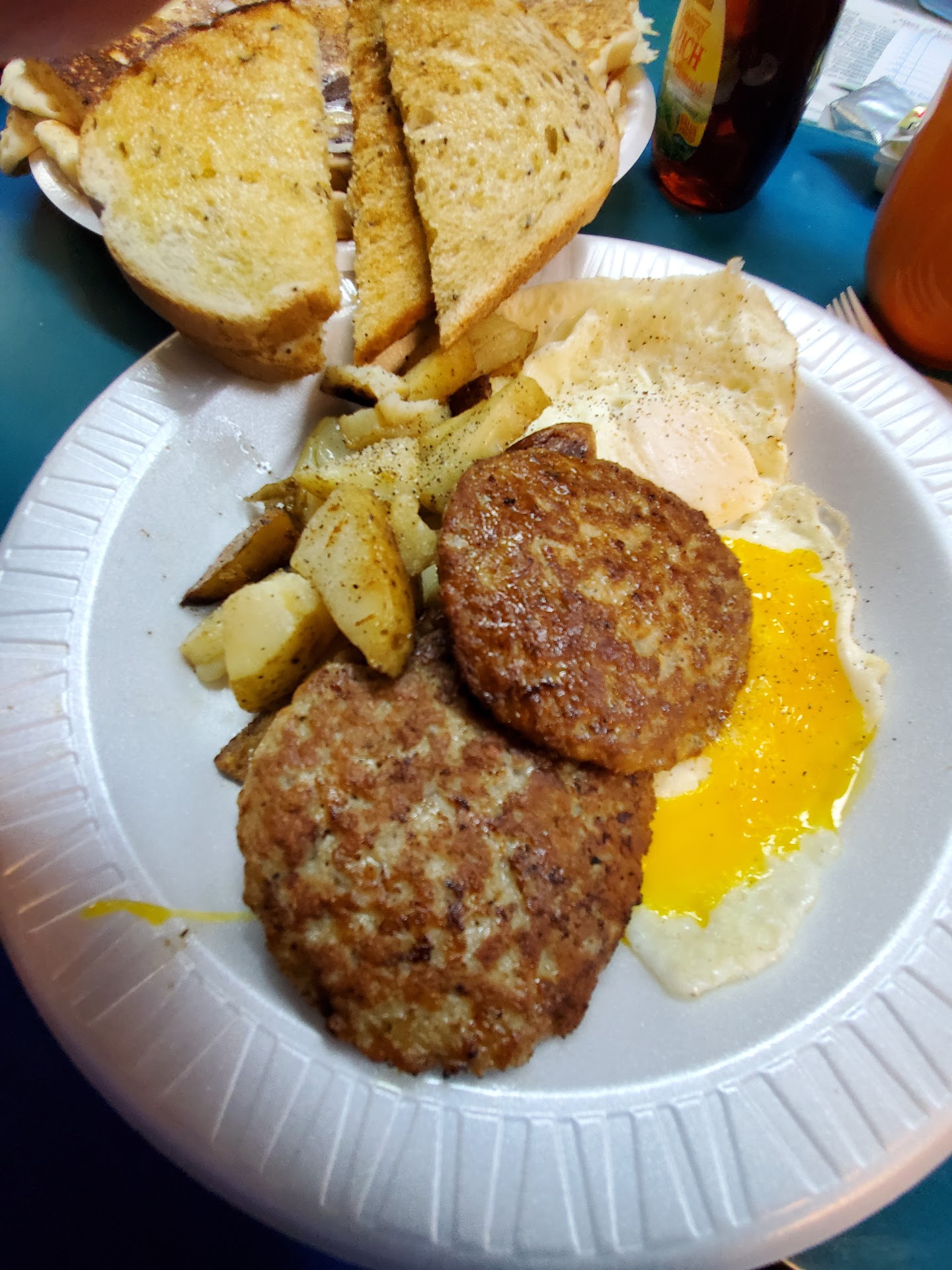 Service was kind and friendly but server was coughing constantly and just affirmed how dirty the place felt. Each of us got an omelette with a side (one sausage and one hash). Bill was just shy of $50ā¦to eat off styrofoam and feel gross about our experience. Food was OKAY, mostly. Western omelette was alright, corned beef hash tasted like cat food (I mean it). Nauseated the whole time by the environment. Should held left but felt bad for the waitress so we decided to give it a shot.
