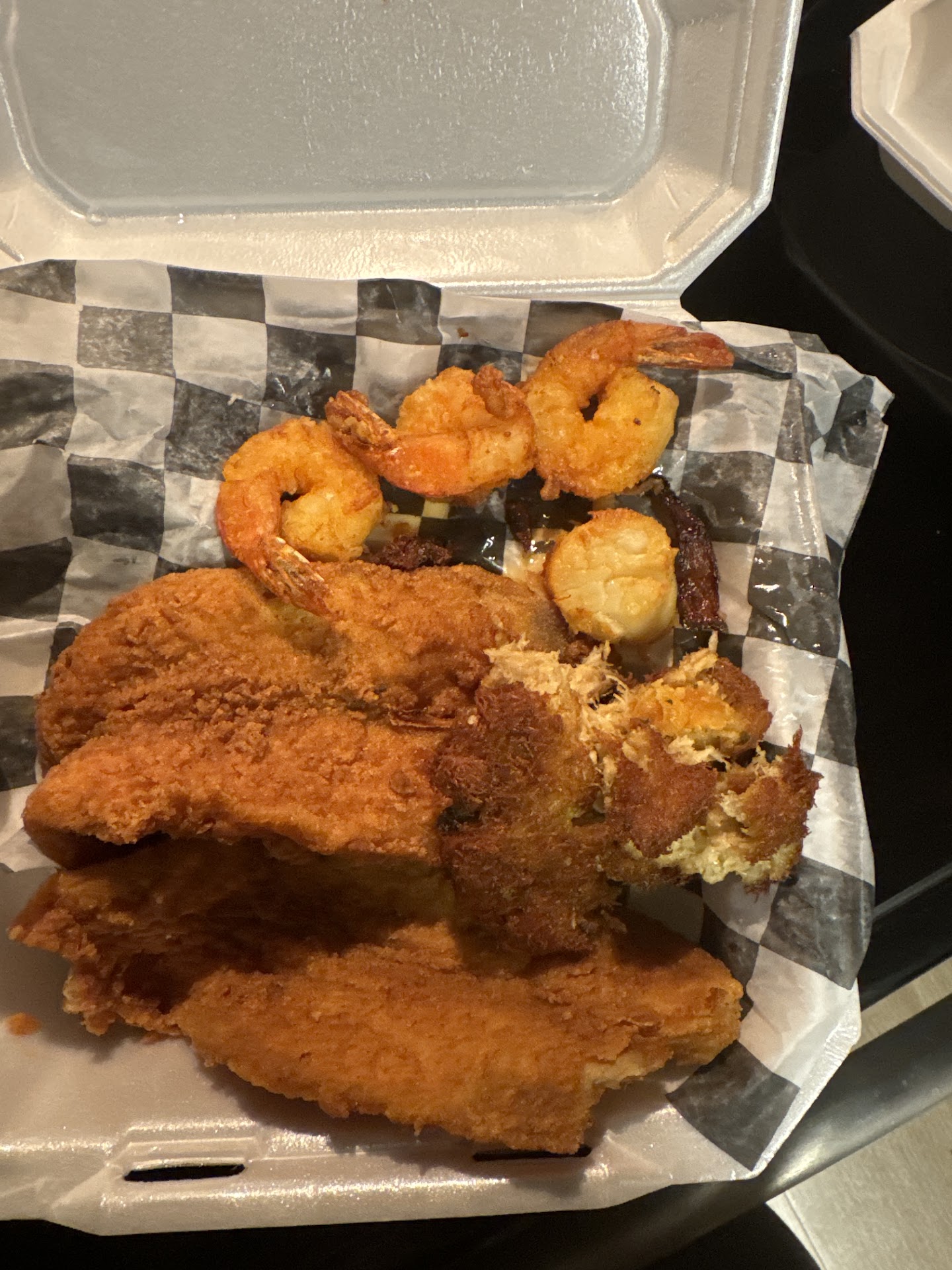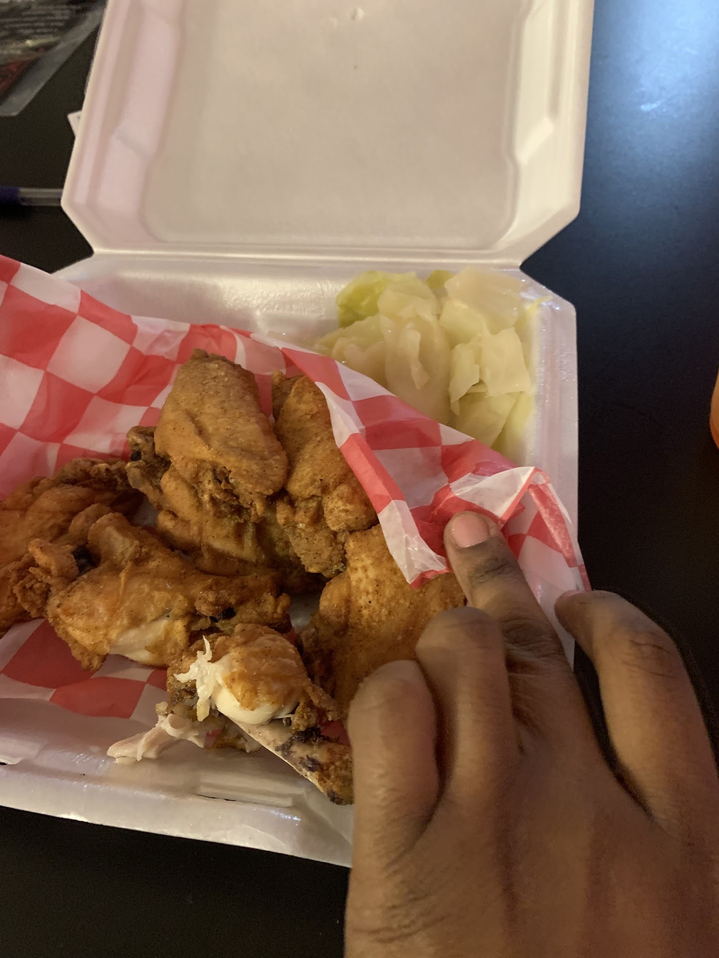 Ā Ā Ā Read moreThe food was āok.ā Despite being told it would take 30 minutes for fried chicken to be prepared and cooked, I ordered my food ans waited. I know it does not take a full 30 minutes to cook chicken. Nonetheless, I was excited to try this place. I also ordered Mac n cheese & collards. The Mac n cheese was like warm to almost cold. The collards were seasoned well, just not to my taste. The rest of my family ordered smothered pork chop, catfish, potato salad, mashed potatoās and sweet potato casserole. The potato salad was bland but that was attributed to it not being an egg based salad. The mashed potatoes were boxed potatoes, yet clumped together and blended poorly. The sweet potato casserole looked appetizing. No one tried it. The fish on the fish sandwich was barely doneāļøāļø On the other hand, the chicken was flaky. The smothered pork chopās gravy looked good but the meat was not very tender. Of note: the hostess was amazing. A real chill vibe and relatable. Some woman (Iāll assume a co-owner) came from the back to tell me my 5 year old could not stand between two stables and swing. Mind you: the restaurant had maybe one other patron, so it was just us AND the child had just been reprimanded for the behavior, by 2 family members. The woman said āmaāam she canāt do that.ā I apprised her I was aware that behavior was unacceptable and sheād just been corrected. She looked at me as though she was offended that I told her I was aware. Customer service was not great in that respect, and due to this I changed my dine in order to take out. But the food was passable, especially when hungry. Funnel cake fries were good. The cornbread was amazing, but I understand it to have come from Food Lion & they dressed it...