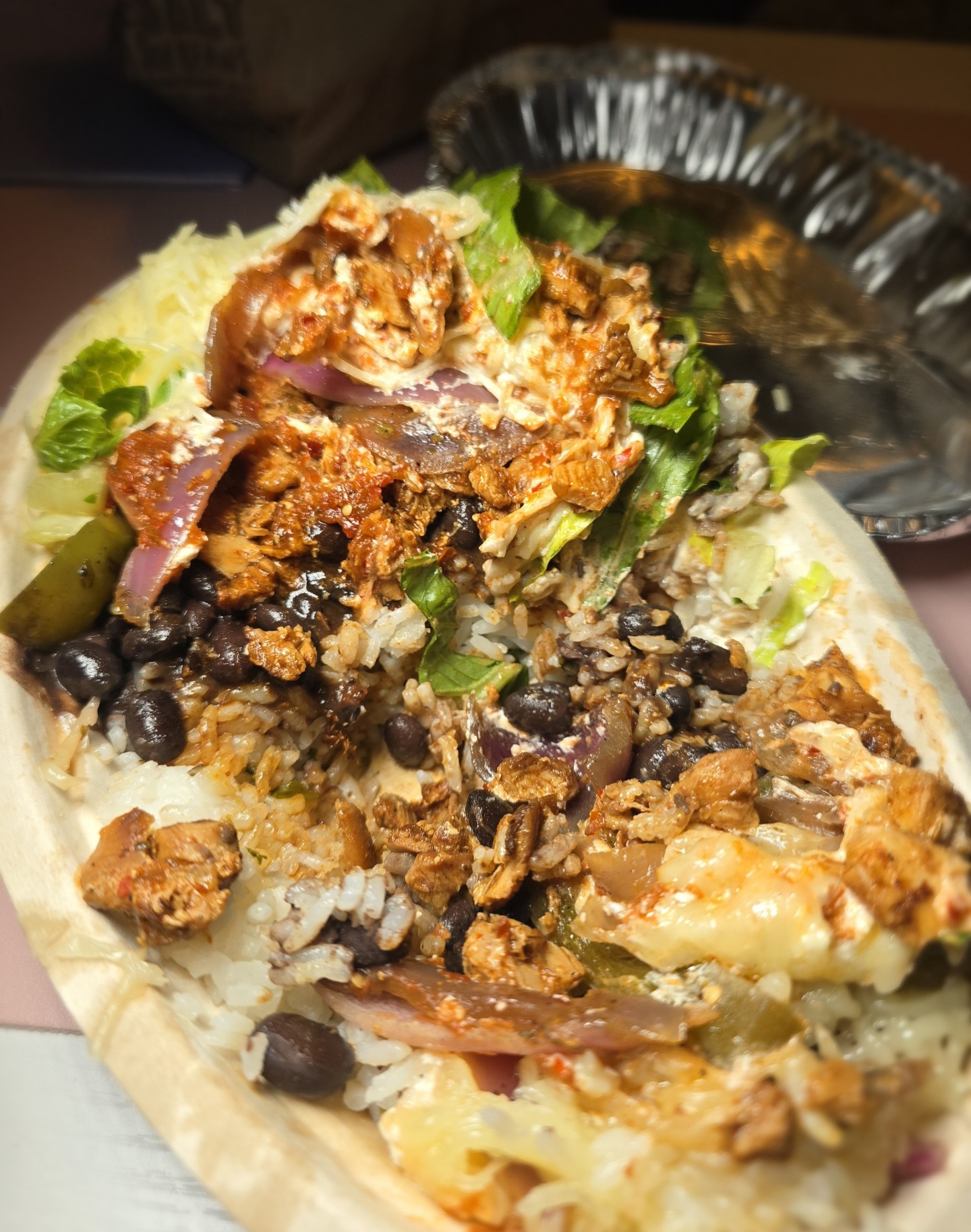 Now, here's where things took a turn. I decided to try online ordering for pickup once, which ended up being a huge letdown. I ordered the chicken burrito bowl with double protein, paid for it, drove to pick it up, and got home excited to eat in front of the TV. But when I opened the bowl, I found barely any meat. Seriously, it was barely enough to cover a single forkful. It was like they ran out of chicken & they just sprinkled a few bits of chicken throughout to make it look like they gave me double protein, but it was far from it. Naturally, I was heated.