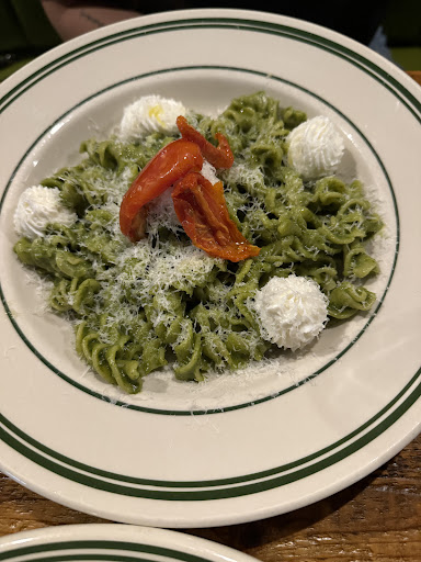 First time here tonight, overall it was a good experience and I will be back but everything in the restaurant needs a little tweaking (besides the cabbage special that was delicious!) the decor itself is Ok but seems unfinished and sloppy. Like they opened before it was completed. The hostess was very nice but when we walked in was just sitting down drawing and seemed unsure of what was going on. Just not a good first impression. All the food was good, and is the biggest reason I’d go back for more. But each thing was just… off a bit. The focaccia was cold and plain. The butter was salted with more salt on top. The pizza was pretty solid but just needed a minute more and like a pinch of salt. I had the mushroom Alfredo, sauce was perfect but the rigatoni was pretty gummy and again was barely warm. My wife loved the mussels but you have to serve bread with it for the broth! We had the ricotta torte which was delicious but then had clumps of powdered sugar tossed on it for some reason. Waitress was great, price was great, everything was just a little off, with some tweaks this place could be the best in...