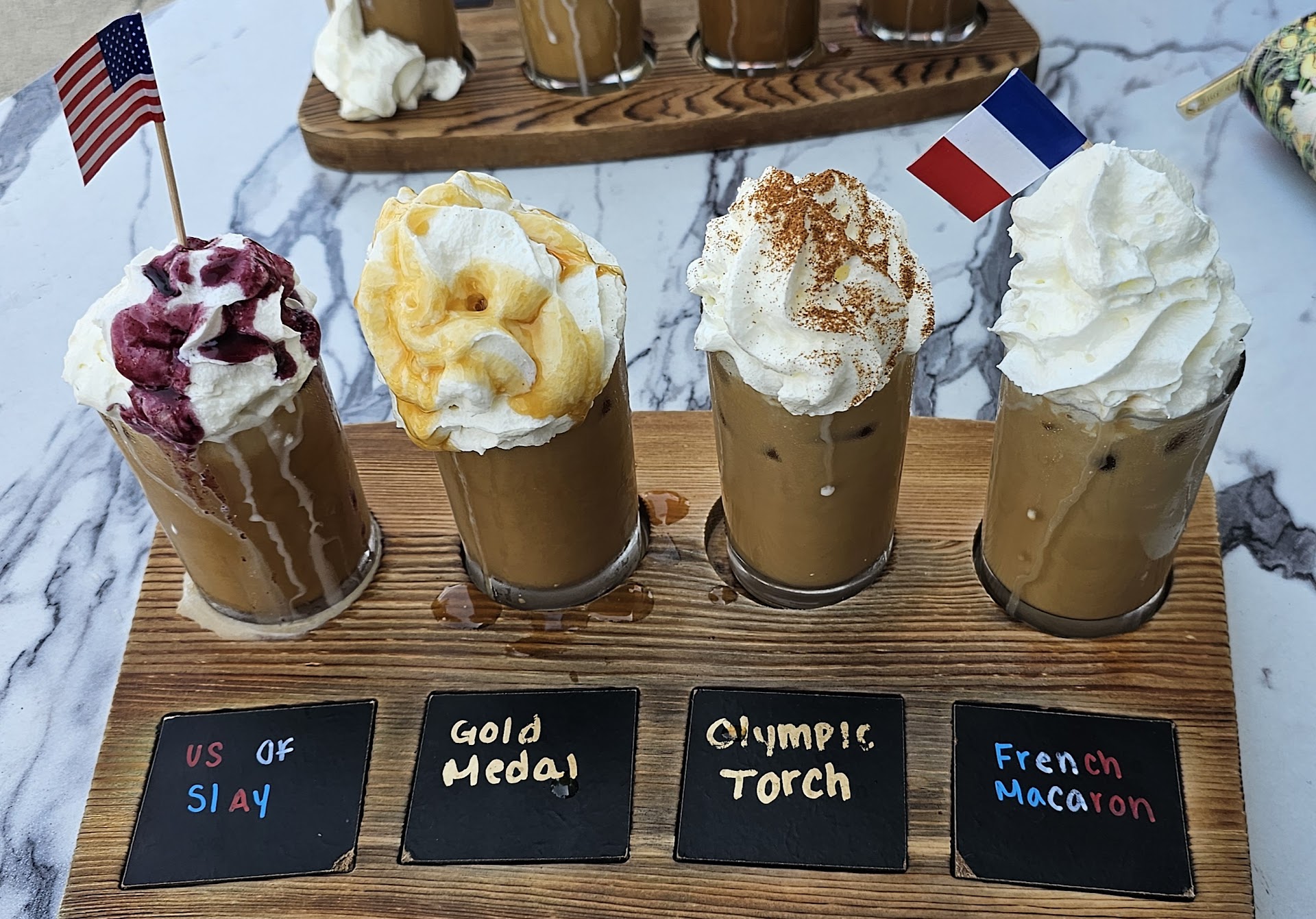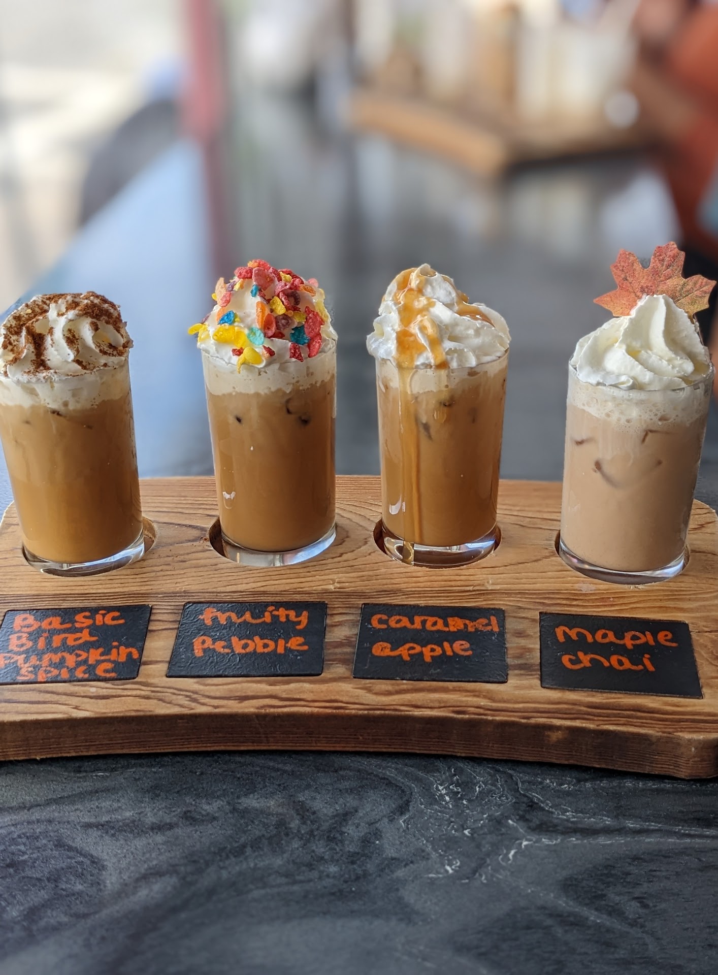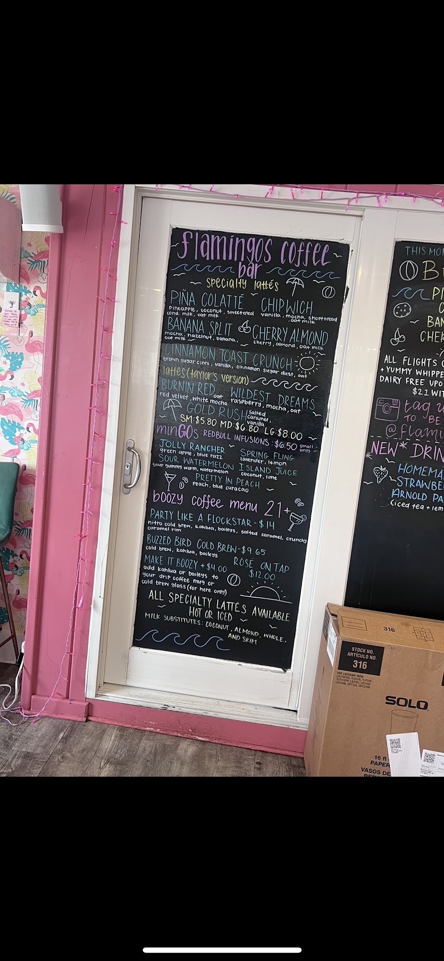 Read moreLegit everyday AND special treat coffee shop Flamingos Coffee Bar is unforgettable. And this is coming from someone who could care less about coffee shops. Breaky total: $44 plus tip (note this price includes a coveted Instagram Coffee Flight for $23 - totally worth it by the way . A large normal hot coffee is only $3.05) Open: Year Round Seating: Indoor and Outdoor Parking: On-street. Pro tip, don't waste time doing laps around the strip looking for parking. Park at the meters by the beach closest to B street, pay the meter, and walk down B street. Order: Back To School Coffee Flight: Pumpkin Spice, Fruity Pebbles, Caramel Apple Latte, and Maple Chai, 1 Angry Donut, 2 breakfast sandwiches.