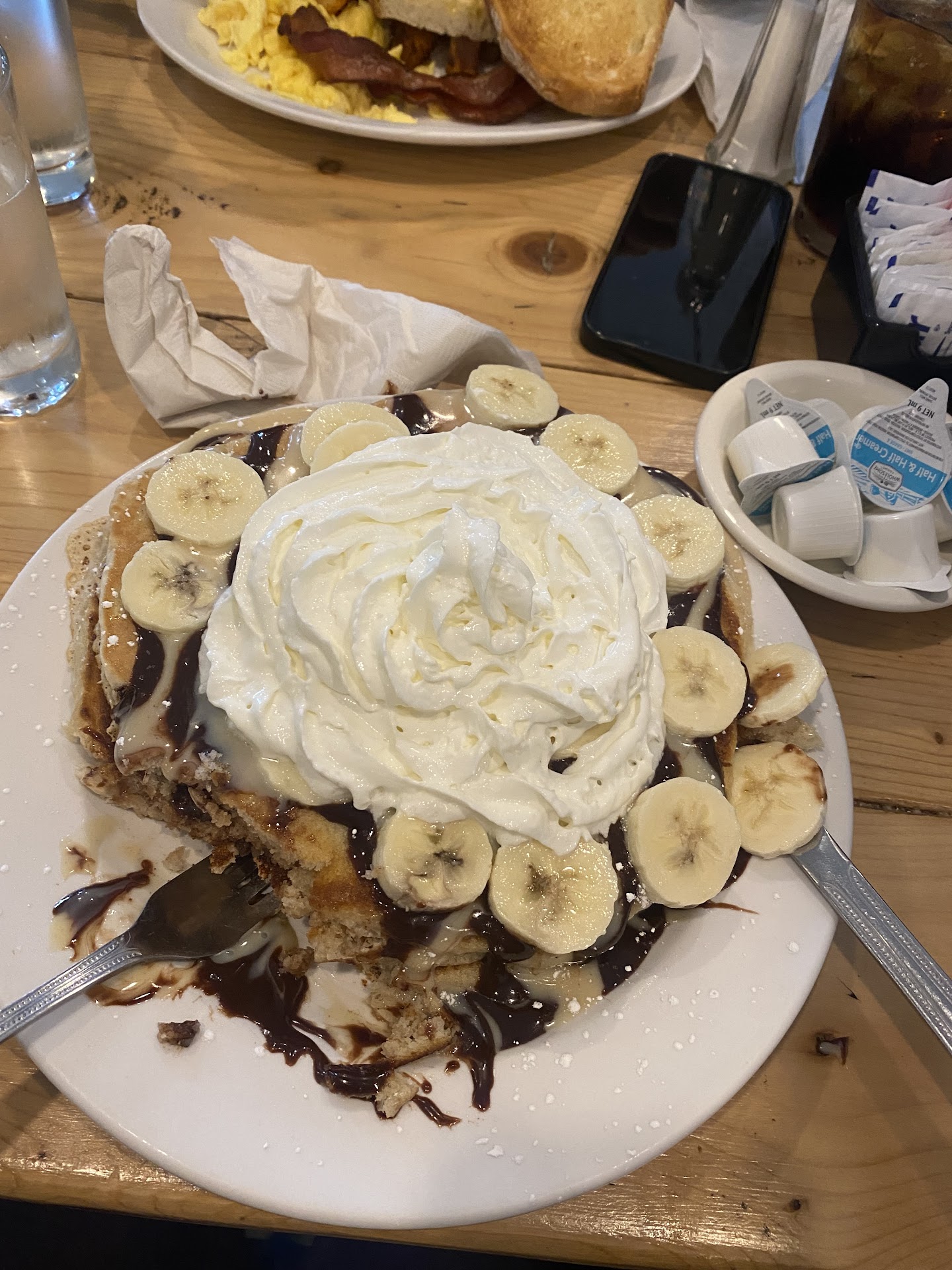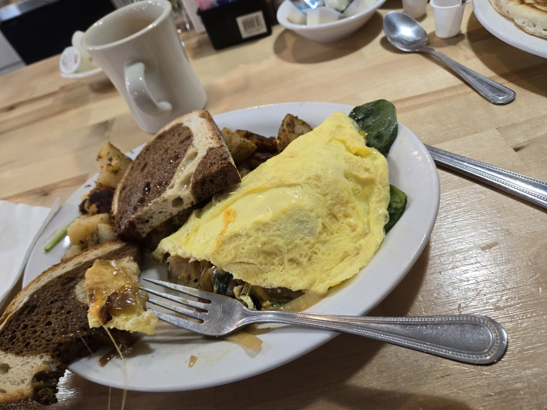 I ordered the sweet potato hash bowl and my partner ordered the western omelet and we got a table pancake.