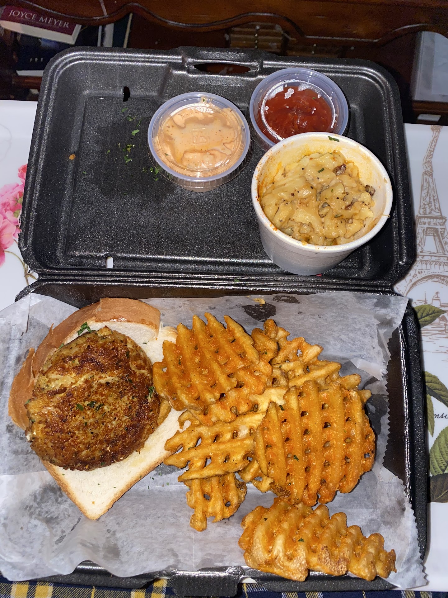Having visited the website gotfishseafood.com my plan was to order what was on the website. Standing there looking at the beautiful dishes on the menu wall, I got lost in a sea of variety. My tummy took over my prior selections and chose the Seafood Trio and a side order of Crab Cakes. What a wonder did my belly find? The aroma forced me to speed home! Or that was the excuse that I had planned on telling the trooper if I was pulled over. LoL