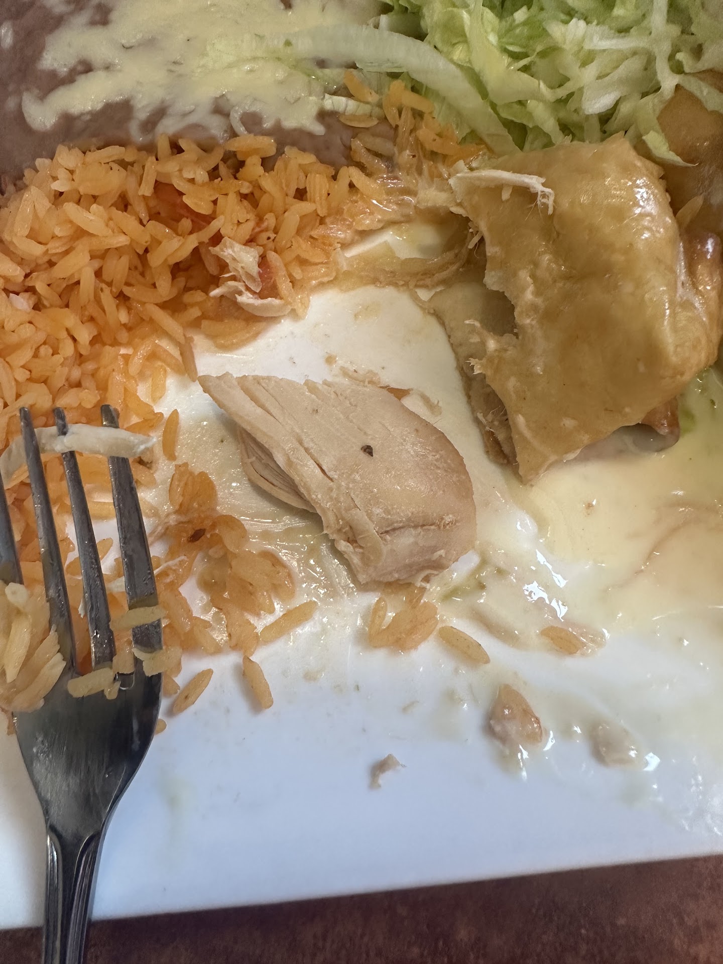 Juan’s was recommended to us from a friend and we normally go to plaza but we’re excited to try a New Mexican place and now I regret doing so I will NEVER come back here not only can you see from the photos that I ate pretty much nothing on my plate but you can tell the chicken was not properly seasoned I mean it wasn’t seasoned at all the beans tasted like feet, I took maybe a bite off those and the only thing that was half decent was the rice and even the rice wasn’t seasoned the chimichangas were so tiny I maybe took two bites which is relevant for later. I hate being that person who asks for something else or asking to get it taken off the bill but I didn’t even eat a quarter of what was given to me. The server was nice at first until I asked to get it taken off the bill cause I wasn’t even interested in taking the leftovers and he told me normally unless something is wrong with the dish they can’t take it off the bill but that he would talk to his manager. His whole demeanor had changed when he came back he said he could only take 50% off my meal because I had eaten some of it the dish came with two chimichangas and I ate maybe 3/4 of one and that’s only because my partner tried a bite of mine and the only reason he ate his dish was because he smothered it in the hot sauces they had and he even said his chicken was bland and tasteless even the salsa was horrible it literally tasted like a can of crushed tomatoes was put into a bowl with some parsley and slapped on the table, the white salsa was the only redeeming part of the dips, the chips were standard for a Mexican restaurant. When I asked to speak with the manager he said he would get him and then a female manager came over awhile later and said that their policy is if you eat any of the dish even a bite then they can only take 50% off the dish (I assume they have adopted this policy because they get this complaint a lot) and then proceeded to tell me she can’t change it because the manager who our server talked to originally is the general manager and she can’t go above his head to me that is HORRIBLE customer service what decent manager leaves for the day when a customer has a complaint and doesn’t even come over and talk to the patrons and get the gist of what happened and what they can do to improve etc I guess he was just too busy trying to get home and from what I’ve read from other reviews a lot of people complain about the blandness of the food I just don’t get how you consider yourself a Mexican restaurant with bland food how does one mess up chicken??? I mean cmon. If you chose to go here go with CAUTION I’m certainly not going to recommend anyone go here ever. Please take your business to Plaza Azteca or franks monster munchies that’s really good Mexican food and not absolute garbage with horrible...