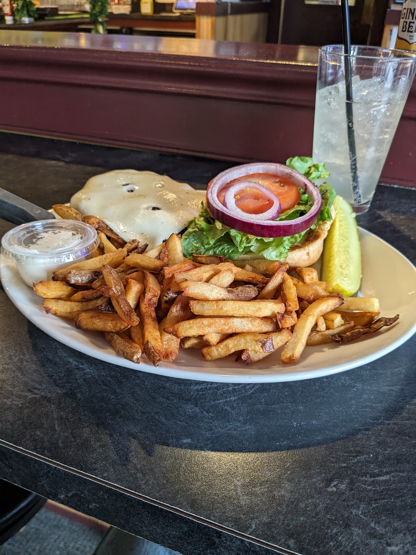 Read moreThe Monday burger 🍔 special caught my attention especially since I was hungry! My hostess introduced herself to me and was very friendly and professional. She joked with other patrons who she knew. I don't want her to end 🔚 up with unwanted "friends", even Ross and Chandler, on her social media accounts so I won't mention her name. I had the Cheeseburger 🍔 Special with fries. There were choices of meat, hamburger or turkey, and different sides. The bun didn't come apart and the cheeseburger disappeared quickly. Widescreen TVs were on and they were not loud 🔊. WiFi available. The Monday burger special is a great deal! Update: May 2024; Turkey 🦃 cheeseburger was good. Friendly service! Update: February 2025; Haddock and Chicken tacos were good 👍! For a sports bar 🍻 and dining area, I am...