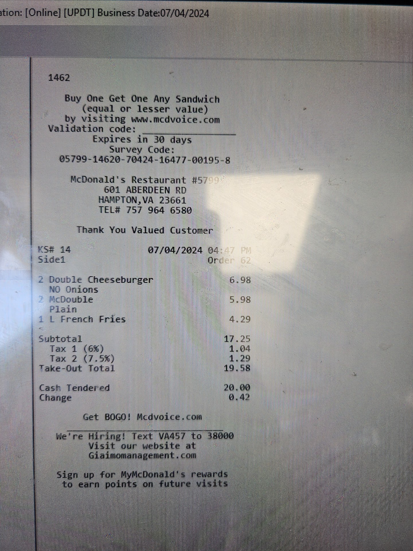 Read moreI went to McDonald's on Aberdeen Road? My grandson and I go to every morning for breakfast. I have never seen such terrible service in my life. I can understand every now and then but this is just about every time we go. Some mornings no sweet tea or we are out of tea. You order your food you get to the window and they can not find you order. You have to order all over again. Then they say pull over will will bring your order. After sitting there for 15 to 20 minutes they bring you some one else order. Today, we went to McDonald's on Aberdeen Road. The line was so long. I got out to go inside to order the doors were locked. No notice on the door that said they were closed. We waited in the long line from 10:10 until 10:45. Pulled up to the window and the gentleman said we are waiting on your hash browns. When I looked through the window as I was waiting for my food. They were emptying trash, sweeping and mopping the floor. I believe in Blessing people's where ever I go. Even with such bad service I still Bless them every morning that I drive through. Is there anyway possible that you can have the staff...