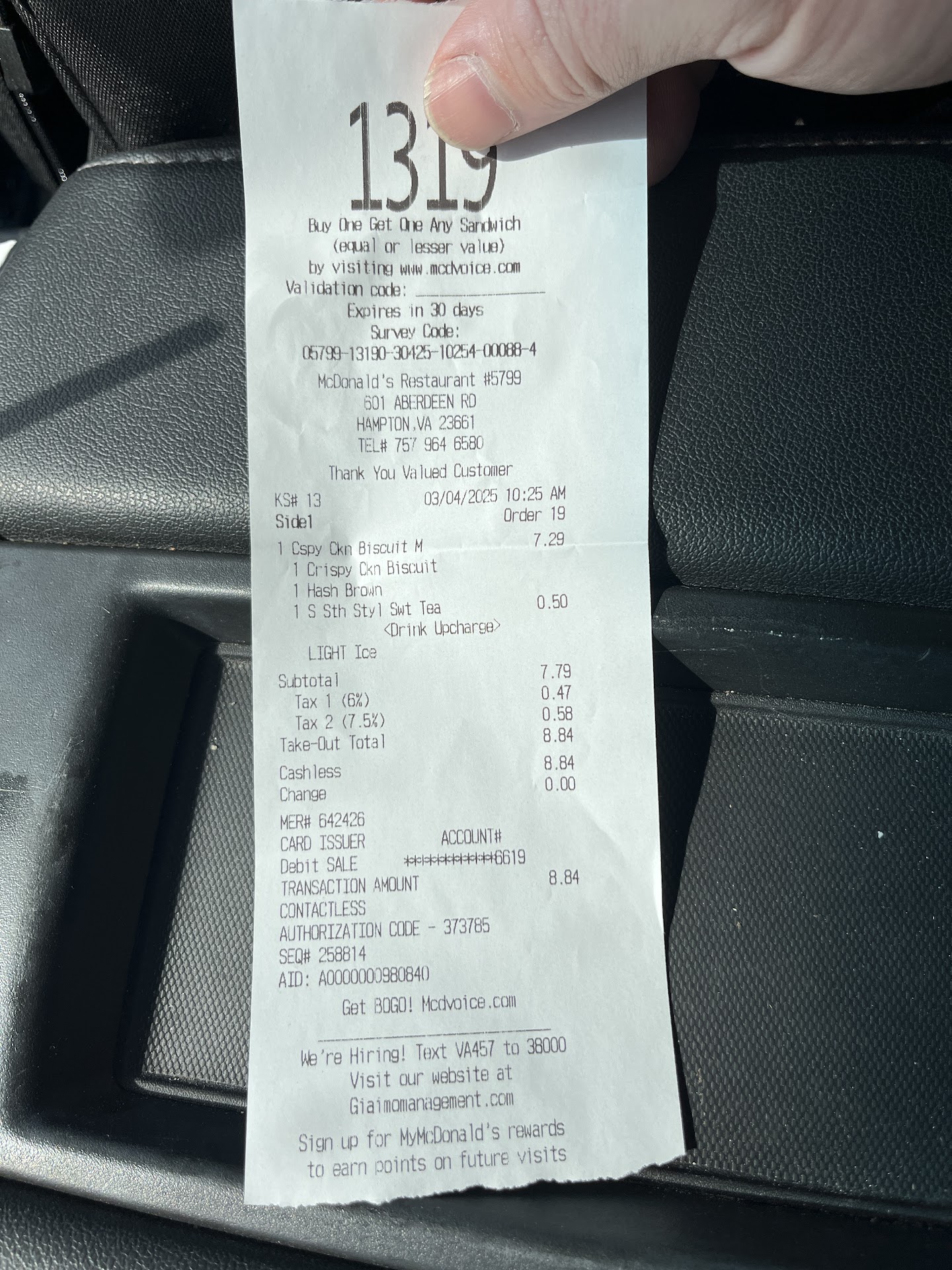 Read moreI went into this McDonald’s why I was taking a break from painting a house with my mom, and a male she works with, when we went in the store 2 of the workers were screaming at each other that “they weren’t the one” I placed me and my friends order on the kiosk but since we were using cash we had to wait at the register, we sat there for about 30 minutes the coworkers are still arguing with each other, a lady finally comes to the desk and I tell her I just need to pay for my order so it can get made, This woman was black, and so was my male friend who was with me. She looked me dead in my face and told me I’m not taking your order but I will take your friends, then asked me to leave the store, my friend asked the lady if she could pay for mine to, she told him I’m not giving him food, I waited patiently, my friend has autism and didn’t see what didn’t really understand it . I was the only white man in the store, and I believe with everything I love she didn’t sell me food...