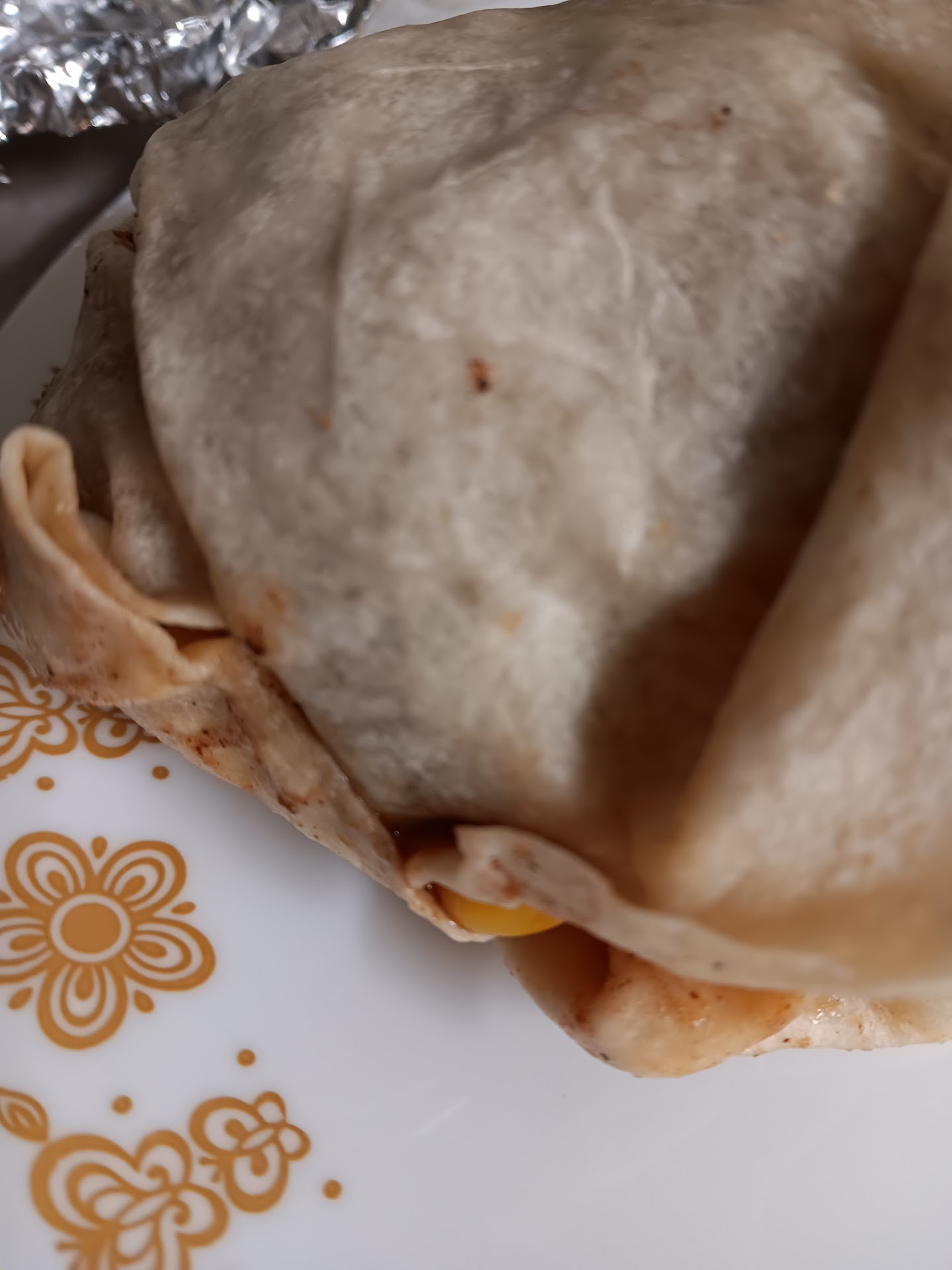 Now with all the liquid from beans and salsa, I could see the burrito was all soggy and the guy was having trouble rolling it. He did not fold it like a burrito, he just rolled it and tucked the edges in. The aluminum foil did not cover the entire burrito and there was a half inch strip of burrito that was not covered by the foil wrap. When we opened the burrito to eat, both burritos were split wide open and half the contents spilled into the foil. The burritos both tasted like rice with corn dish. There was no meat flavoring whatsoever.