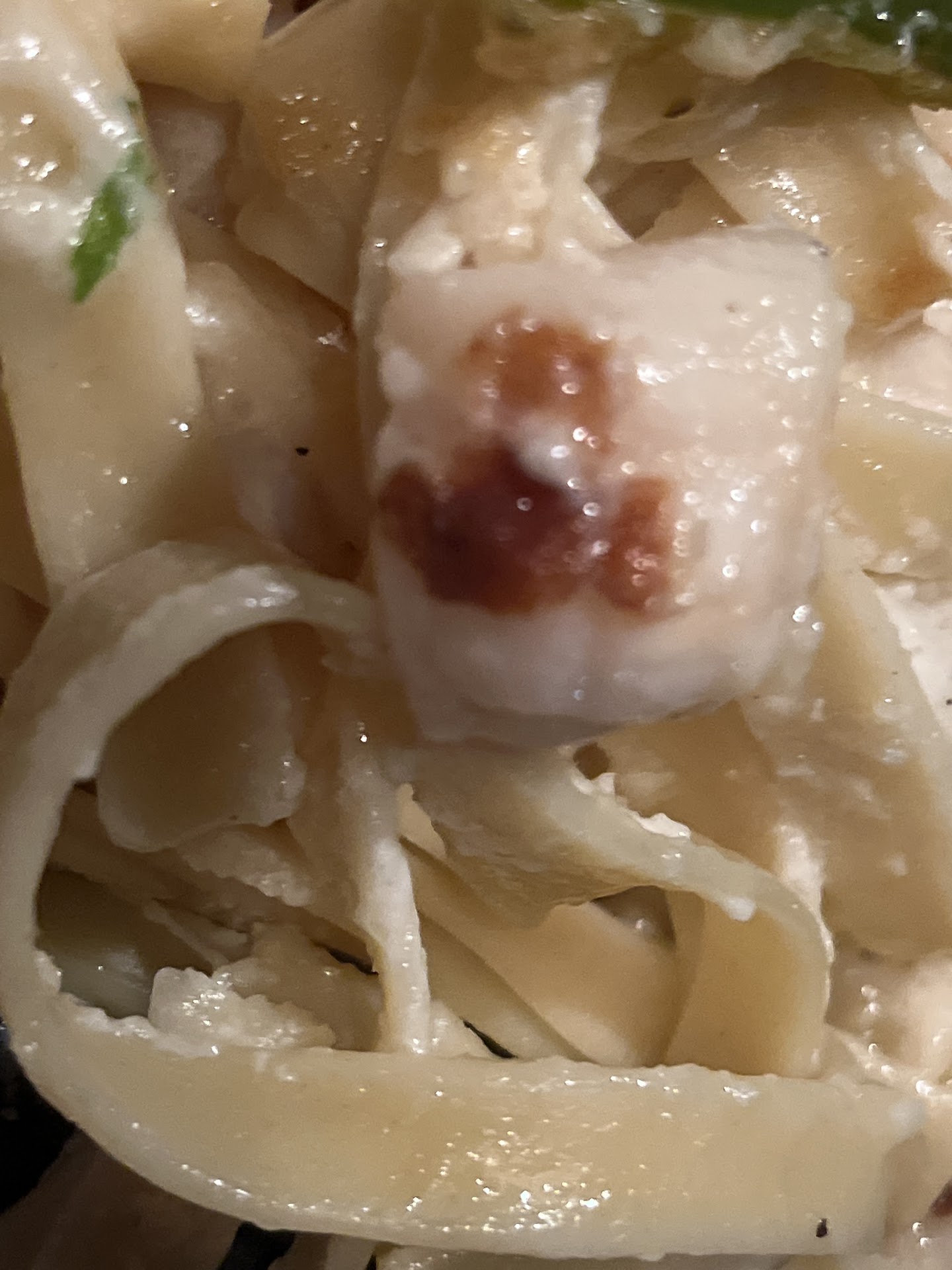 The Ravioli Carbonara was covered with a heavy pasty sauce--not the light cream sauce as advertised. My friend ate one Ravioli and then just ate the chicken. I took the rest home and tried it for lunch the next day. It was too thick and heavy for me and I didn't even make it through the first ravioli before it went in the trash.